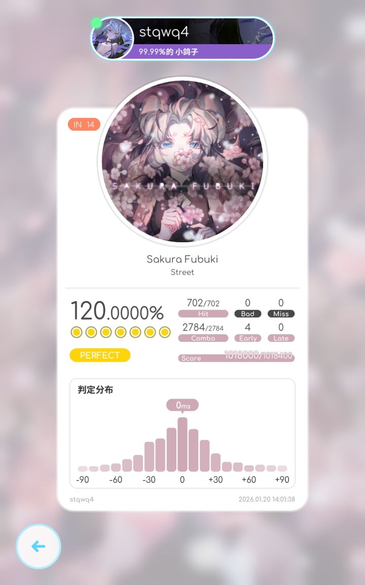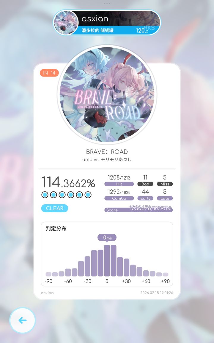 5.还有一个巨想夸,好用的校准机制,不仅每局打完点下面统计单可以看判定分布表,而且设置里校准判定有机瞄模式,某些公司的音游也学学人家,你说是吧Cytus😸。
