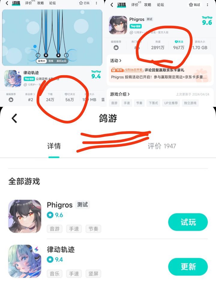 鸽游的新【竖屏】音游下载量有点可怜了❗