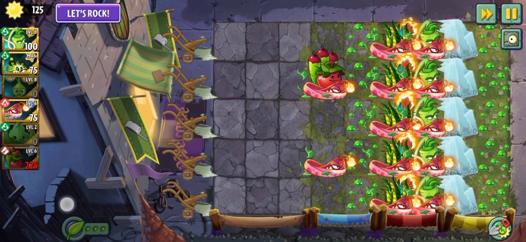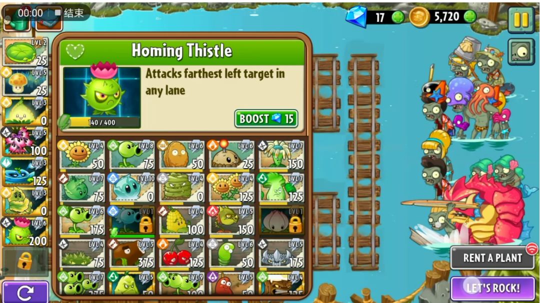 关卡足够神(qi)奇(pa)才有意思,不是吗😋? 能种植物的地方非常少,分布不规则,中间多,两边少,而且都是水域 ps:你们可以猜一下这两张地图取材于哪里 (腾讯家的游戏,抄袭PVZ2)