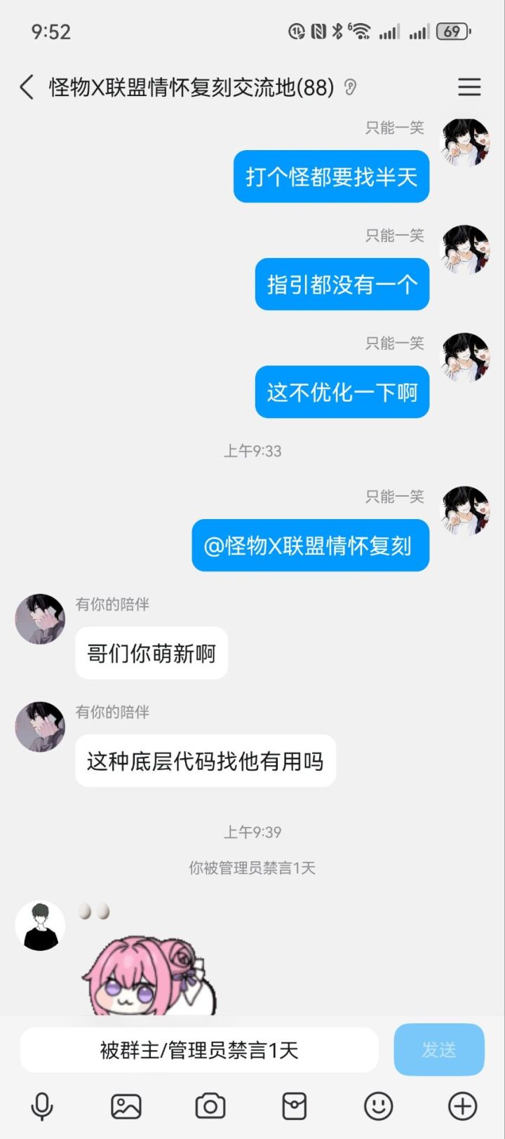 只能一笑 : 听见大群那些老玩家说,在群里说一句这游戏哪里有问题,不是被踢就是被禁言一个月,亏的这么多人给他充值支持他这游戏,要不是以前读书的时候玩过这游戏,就这比猪还难看的吃像,而且吃相难看就不说了,连玩家意见都不听,bug一堆反馈都不带修复,这游戏还隔着搞搞那弄弄的捞金,距离离倒闭都不远了,估计倒闭前都要搞一次充值活动吸血,然后说游戏要倒闭了