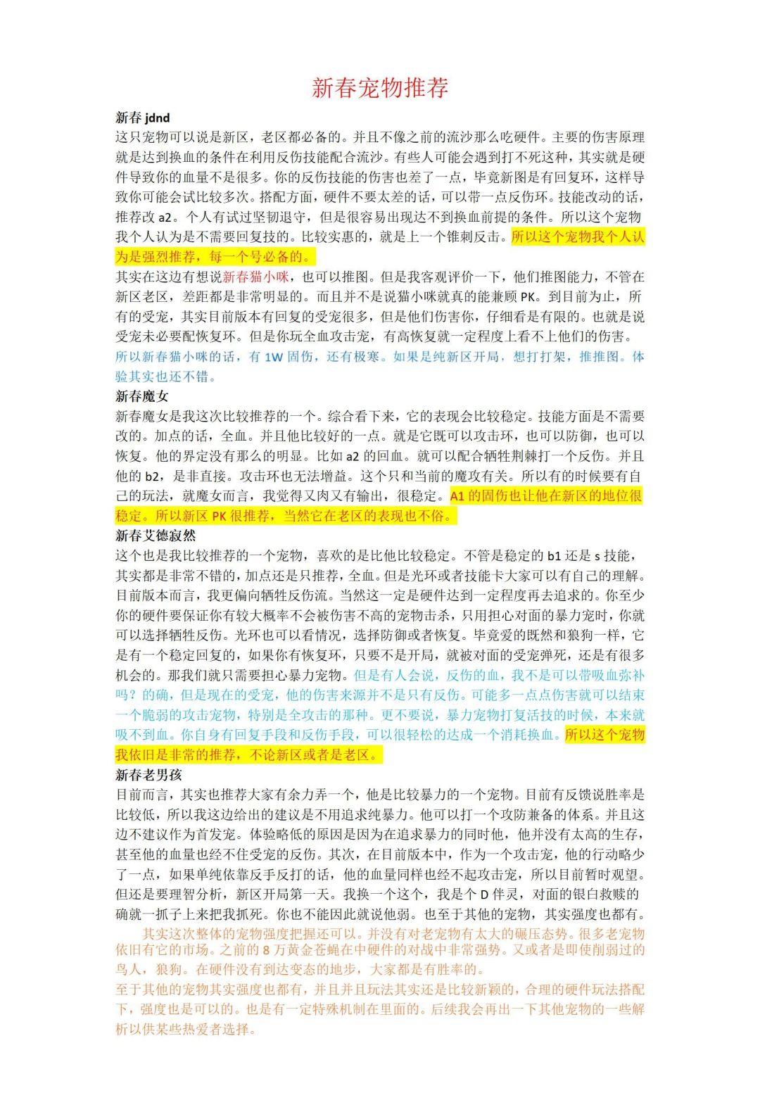 亲耐的勇士们,为了让广大萌新与回归勇士有更好的体验,这里专开一帖,分享部分攻略,同时也感谢提供攻略的热心玩家大佬们 ================================ 【攻宠与守宠】 =================== 【速度说明】 【 转生说明】