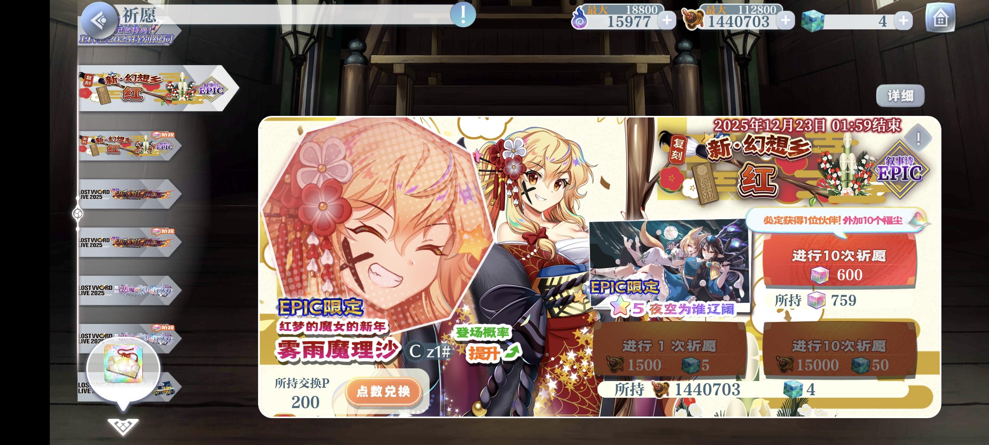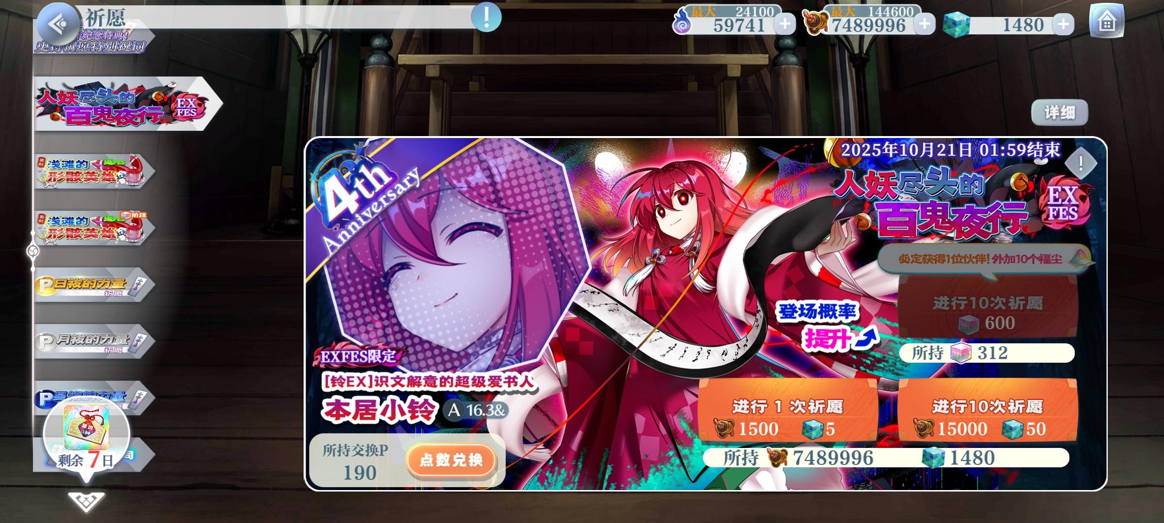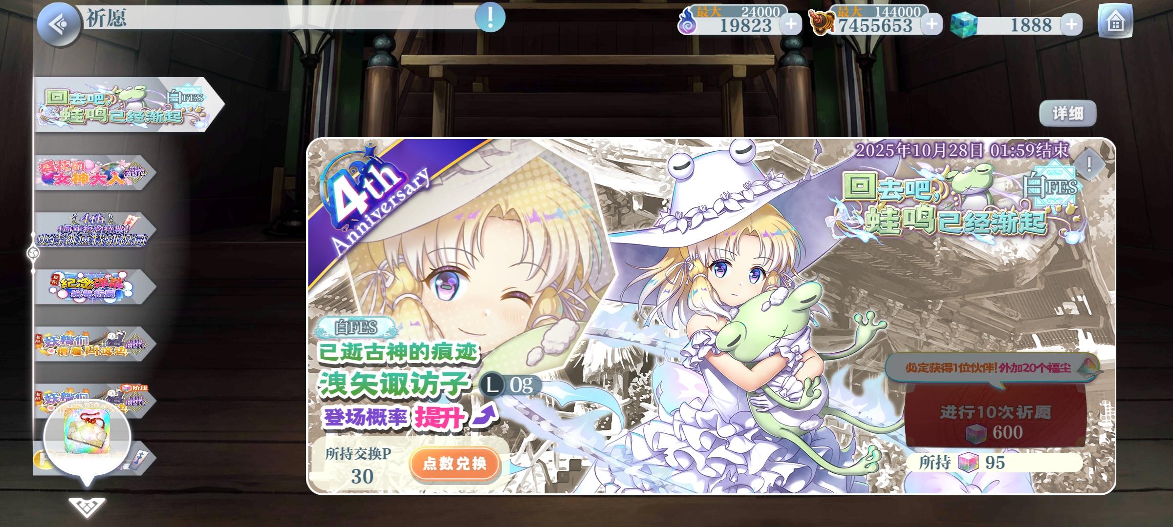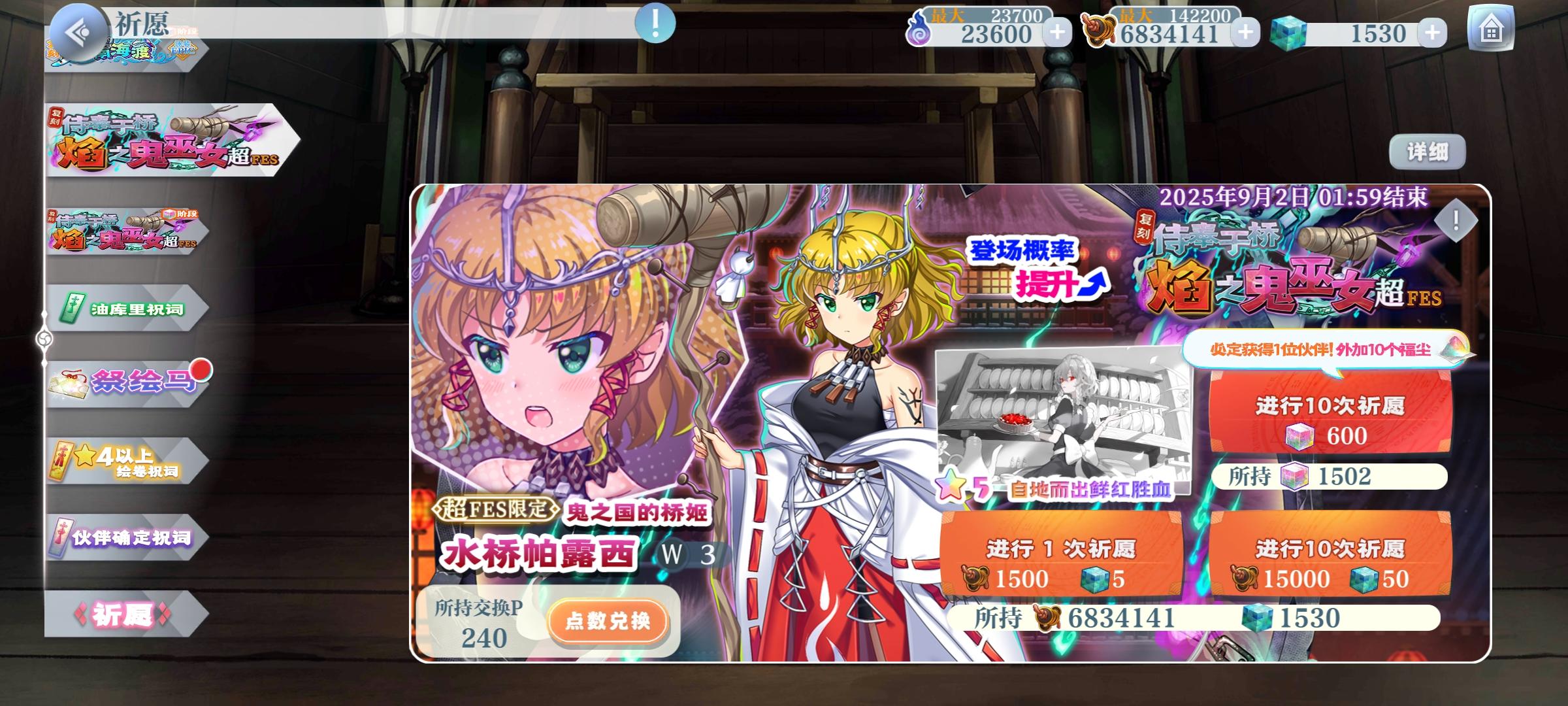 其实垫了70发的,然后突发奇想不想点十连了,就一发入魂了概率学,真是奇妙呢总之大致总结一下最近半年的抽卡记录吧!水苗:180抽出一个,430抽出一个,然后换一个收手大(翅膀)苗:80抽出巫女桥姬复刻:如井(240抽出)樱赫卡:怒吃一井白蛙:(仅有)30抽蓟县出货,最后一个十连是让舍友帮忙抽的(他问我“新”是什么意思)魔小铃:190抽出樱残