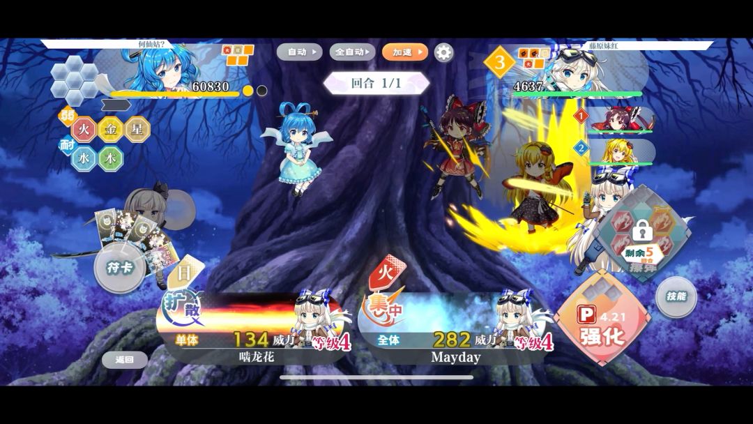 方案优点:稳定,容错高。 较水紫方案:敌人行动次数少,沙全体符动画快。避开了同时打死魅魔(清除buff)和小怪(阳攻-8层)后,没输出的尴尬回合。 ps:神绮等级如果不够,沙沙第一个射击改为全体符,打死下面那个小怪就行。