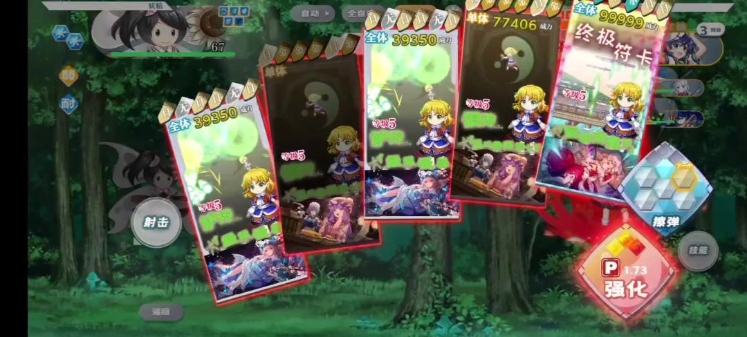 方案优点:稳定,容错高。 较水紫方案:敌人行动次数少,沙全体符动画快。避开了同时打死魅魔(清除buff)和小怪(阳攻-8层)后,没输出的尴尬回合。 ps:神绮等级如果不够,沙沙第一个射击改为全体符,打死下面那个小怪就行。