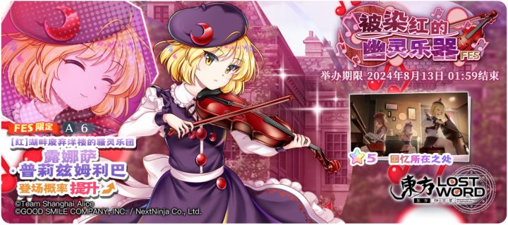 Relic限定祈愿【春风骀荡的刻限冥宫】与FES限定祈愿【被染红的幽灵乐器】现已开启!✨活动时间:2024年8月6日 02:00至2024年8月13日 01:59 ※「[时间界限]西行寺幽幽子」是仅在Relic限定祈愿中登场的角色。※「春风骀荡的刻限冥宫 Relic」中需要交换P350才能交换「[时间界限]西行寺幽幽子」。※「[时间界限]西行寺幽幽子」需要使用同名伙伴或者「灵之替身」进行