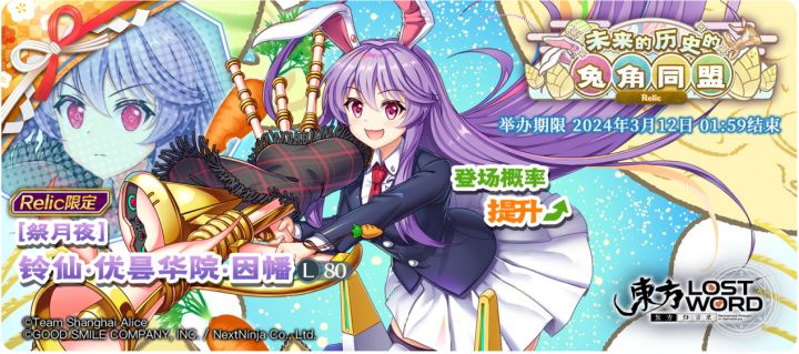 Relic限定祈愿【新时代的月都万象展】现已开启!✨活动时间:2024年2月10日 02:00至2024年2月17日 01:59✨角色概率UP:「[祭月夜]蓬莱山辉夜」登场概率提升的Relic限定祈愿! ※「[祭月夜]蓬莱山辉夜」是仅在Relic限定祈愿中登场的角色。※「新时代的月都万象展 Relic」中需要交换P350才能交换「[祭月夜]蓬莱山辉夜」。※「[祭月夜]蓬莱山辉夜」需要使