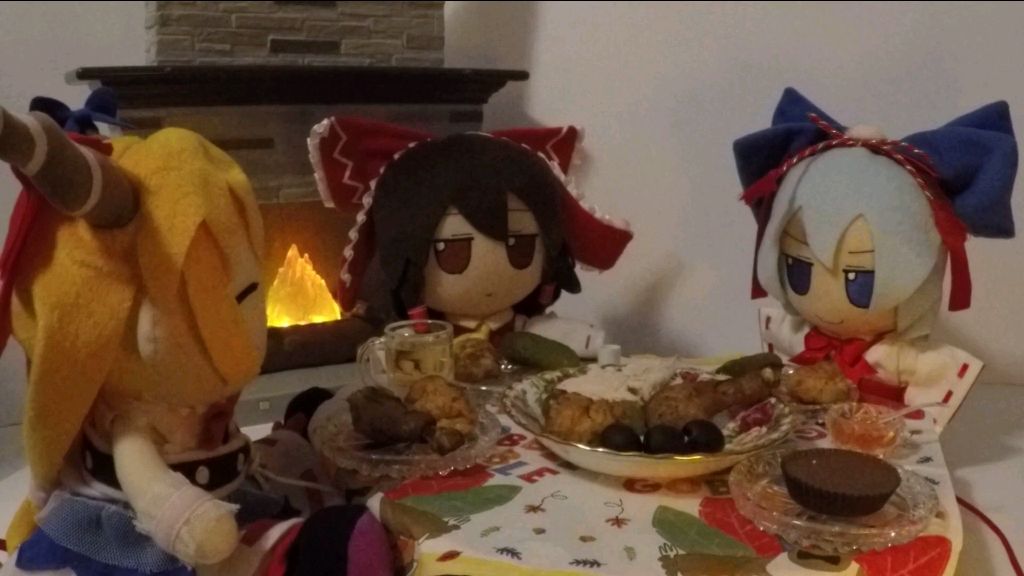 作者:fumos and other future landfill 标题:Happy Thanksgiving fumo #fumo #东方 #东方PROJECT #琪露诺 #博丽灵梦 #伊吹萃香