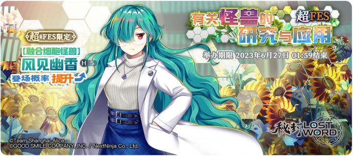 超FES限定祈愿【有关怪兽的研究与应用】与FES祈愿【云雾所笼罩的红色暗夜】现已开启!✨活动时间:2023年6月20日 02:00至2023年6月27日 01:59✨角色概率UP:「融合细胞怪兽 风见幽香」登场概率提升的超FES限定祈愿!※「有关怪兽的研究与应用 超FES」需要交换P250才能交换「融合细胞怪兽 风见幽香」。※「融合细胞怪兽 风见幽香」需要使用同名伙伴或者「天之替身」进行界