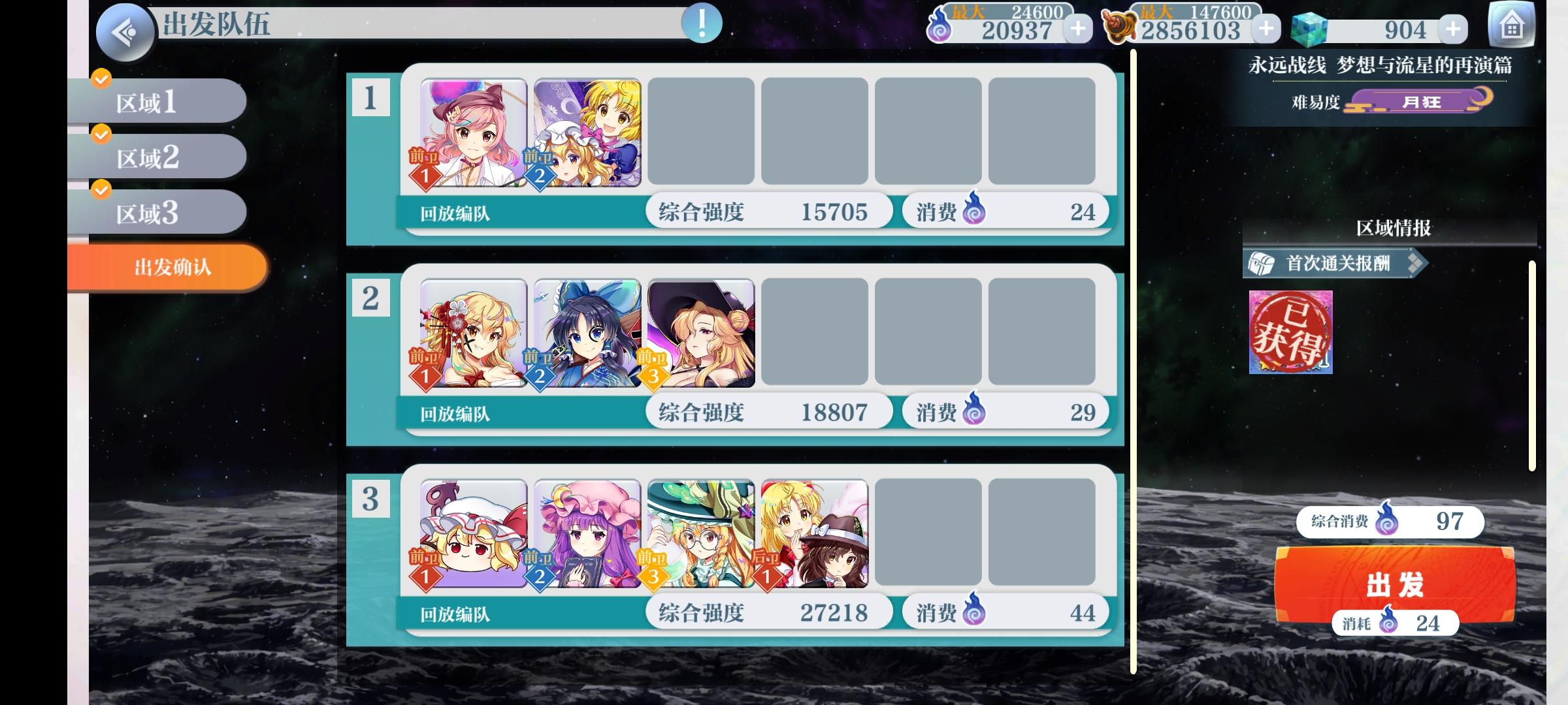 前面抄作业,二队沙还没满级带个5c练级,研究了一下三队前排带个挂件挡冰,后排带任意一个可以给自己挂异常或者免电的输出应该都行,要不是策划给帕秋莉喂毒二阶段一个大有概率解决不了,三人就够了