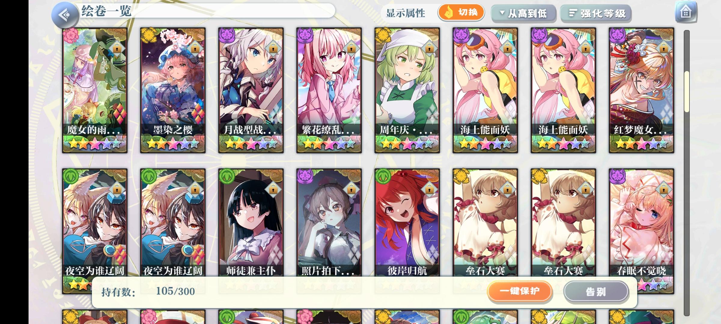 其实垫了70发的,然后突发奇想不想点十连了,就一发入魂了概率学,真是奇妙呢总之大致总结一下最近半年的抽卡记录吧!水苗:180抽出一个,430抽出一个,然后换一个收手大(翅膀)苗:80抽出巫女桥姬复刻:如井(240抽出)樱赫卡:怒吃一井白蛙:(仅有)30抽蓟县出货,最后一个十连是让舍友帮忙抽的(他问我“新”是什么意思)魔小铃:190抽出樱残