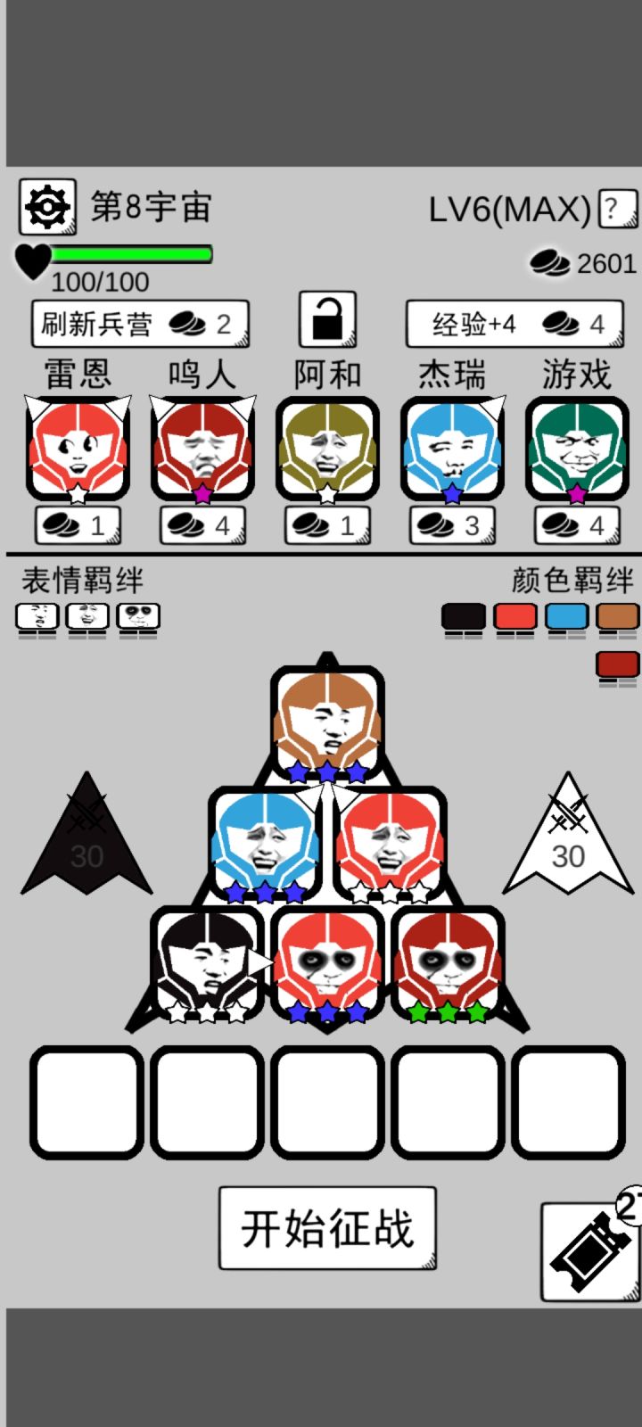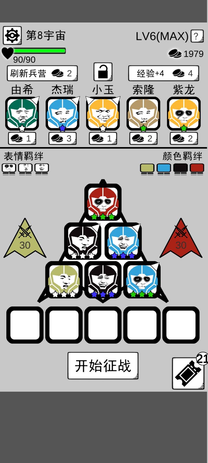 自从发现了疲惫羁绊之后,这游戏难度直线下降。图为无尽模式配置,截图时刚达成6坏坏满星,结果退出来之后就再也进不去了。既然天意不可违,那就顺应天意吧。