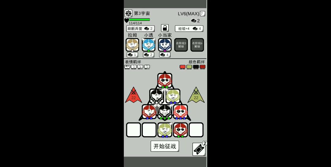自从发现了疲惫羁绊之后,这游戏难度直线下降。图为无尽模式配置,截图时刚达成6坏坏满星,结果退出来之后就再也进不去了。既然天意不可违,那就顺应天意吧。