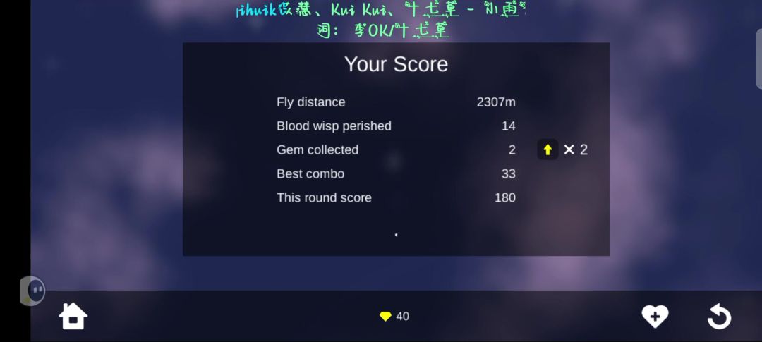 分数和距离乘起来一共加了一百万多万多。。。。 配置:5只经验鸟,1只秒杀鸟,一只领钻鸟+晴天卫士 ps 三个能量加满只花了15秒。。。。