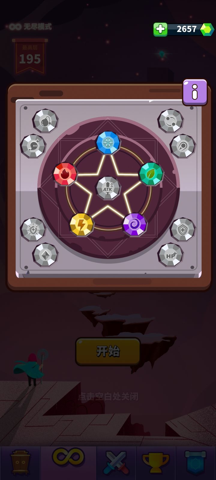前期最重要的就是搞钻石, 此时,进游戏不需要拘泥于什么流派,什么都可以试一试,游戏结束使用广告翻倍钻石。钻石足够就先买丰饶斗篷。有钻石就升级,直到升满。 无尽模式解锁后就打无尽模式刷钻石。亲自上手后,感觉符文流最适合,前期刷钻。伤害够高,下限高。符文中,火球术,暗影飞弹和暗影射线,爆发很高,三个只要有两个,其中一个升两级。打第一个boss踩两三个符文就死了。 开始冲层时,技能书的构筑不能单