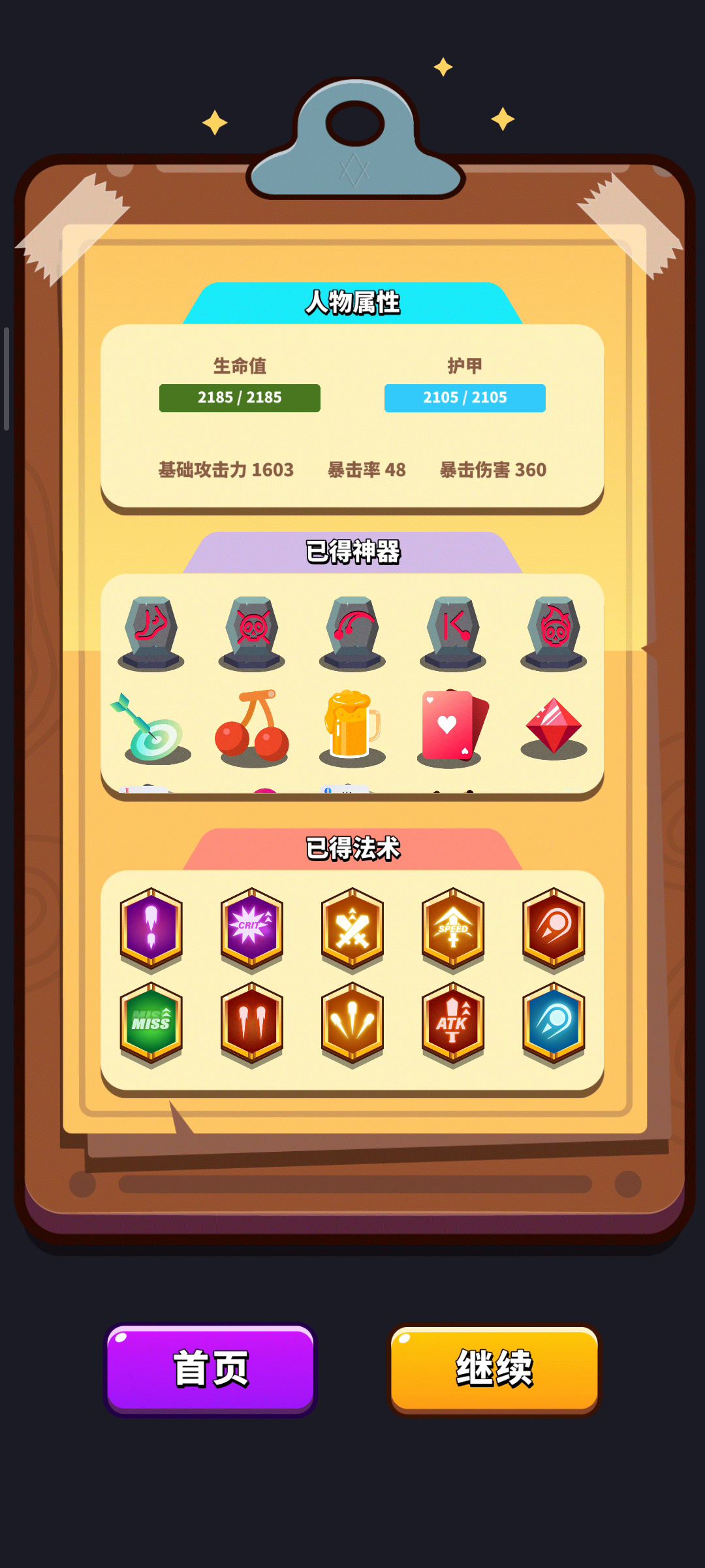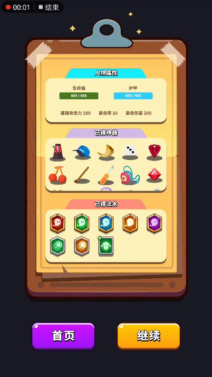 毛笔打boss快,但是清小怪慢。综合下来筷子比较好用些。前期没有看广告刷双斧,所以数据差了点,5200血,2000攻击。有双斧的话,多拿几个火龙果,数据会很可观。 当然了,爬塔还是遁甲流爬的层数高一些。