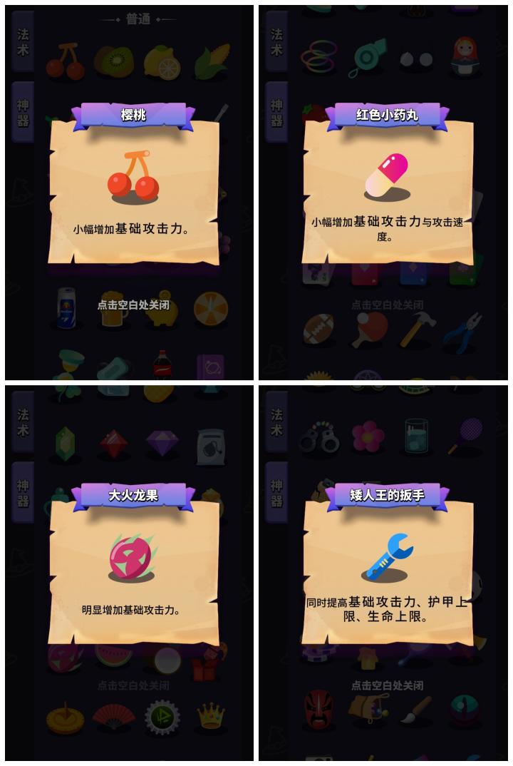 披风 + 魔法书的组合我就不多说了,各种神级道具也都了解,直接说说各流派通关后的一点心得,有兴趣可以尝试一下。弹道流:超简单,前期有没有【棋子】和【满血给金币】的那玩意儿都无所谓,最优先级的就是【击杀增加攻击力】的那两个,再就是【透明羽毛】,前期伤害足,后期走走位无伤通关搜易贼,我一般是五弹道+攻速攻击暴击。盾流:超简单,前期狗一点,【金币装】有一个就行,然后就是疯狂叠护甲,后期站撸+冲撞,只
