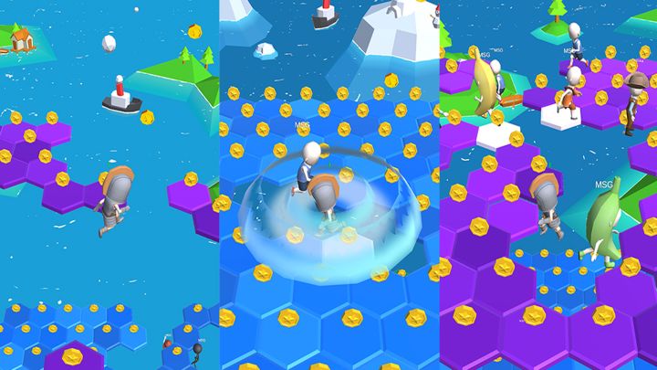 但是还有其他玩家与你同台竞技。你将面临多达25个敌人,成为最后的获胜者!在一个逐渐崩坏的竞技场中成为最后的冠军!用尽一切手段不要掉落到水中!