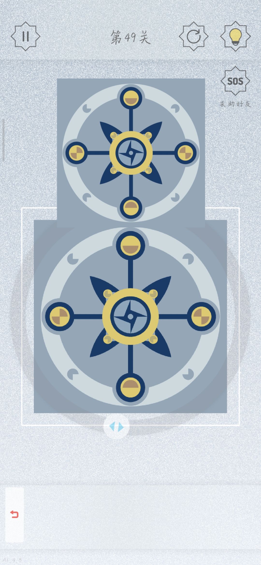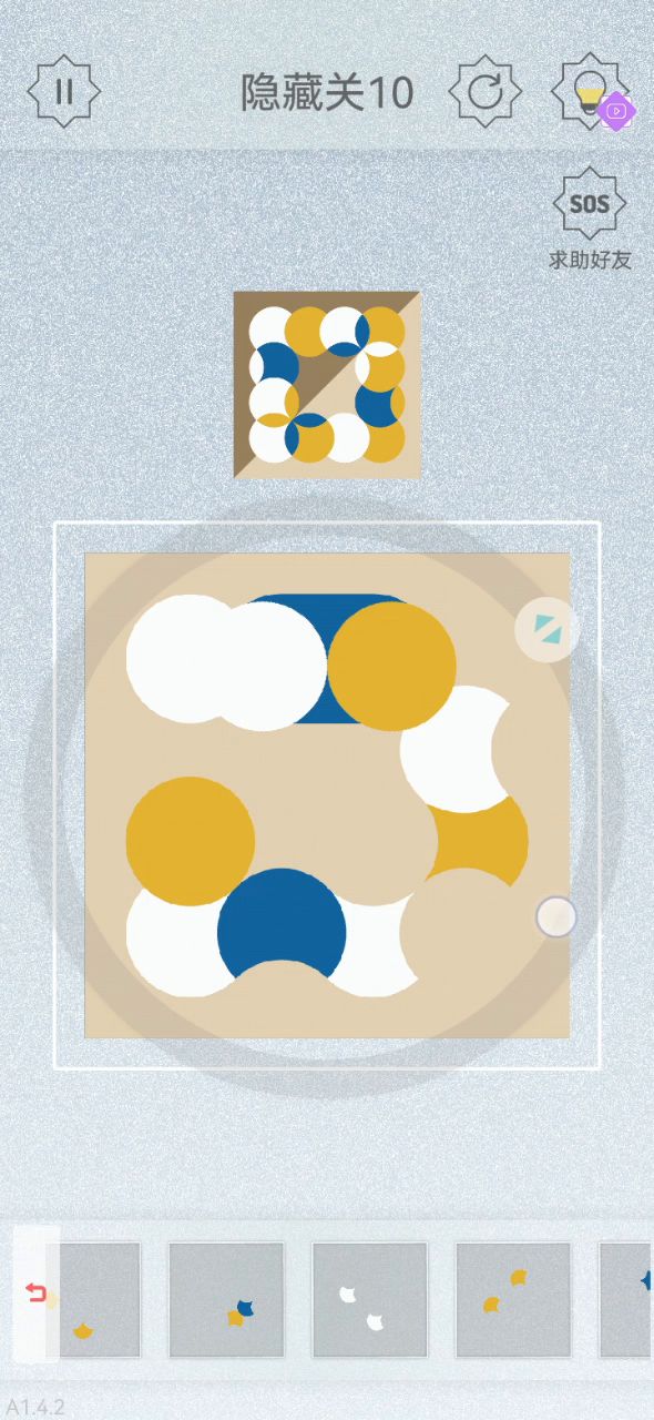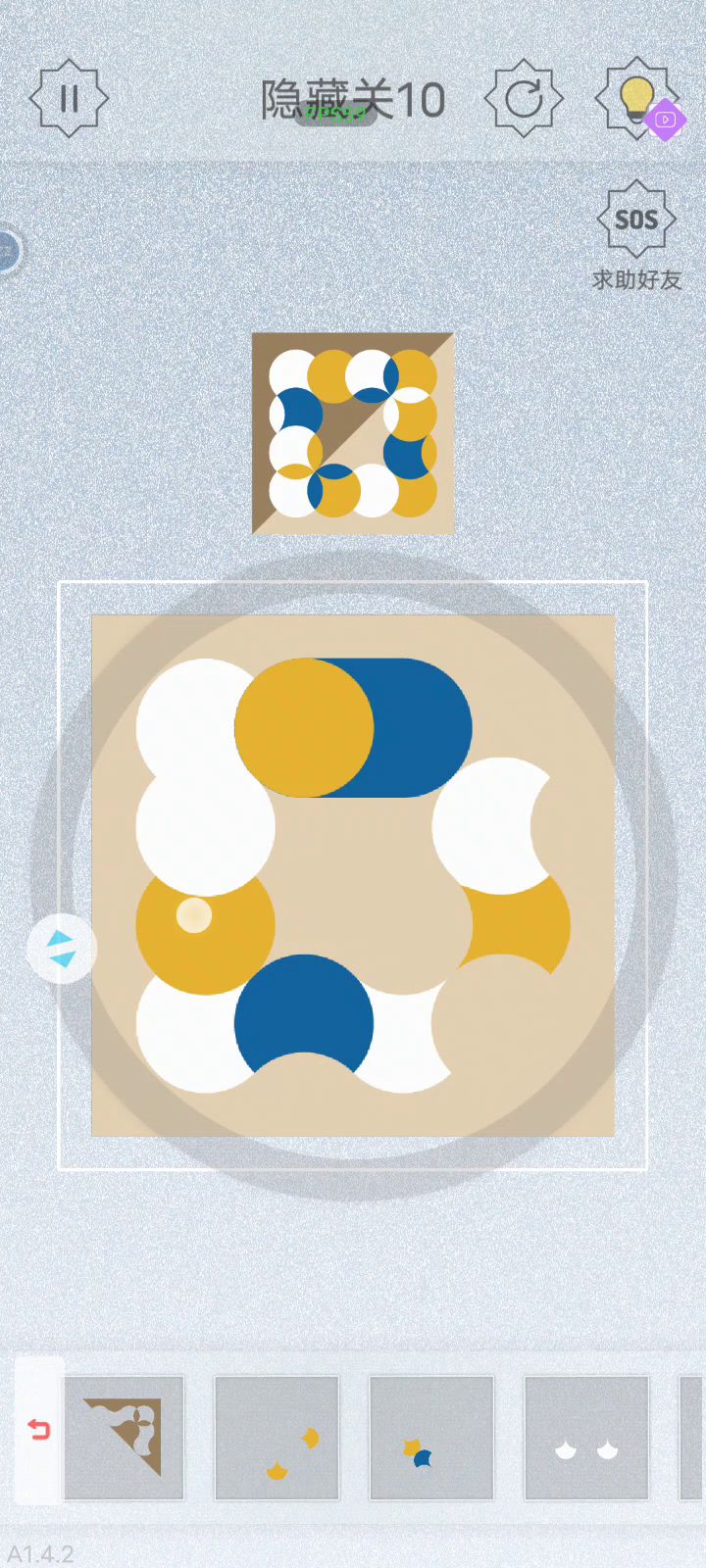 在论坛里大致翻了一下,有很多直接通关的教程,却没有如何做出的思维路径。秉承着“授人以鱼不如授人以渔”的想法,我把自己的通关思路写了出来。 首先将零件大致分为三类,第一类为圆形,第二类为伞形,第三类为隔板。 首先观察例图,和给出的零件进行对比。 注意到图片中出现很多叶状图形。从给出的零件看,这些地方只能是圆形与伞形的叠加。叶状图形的颜色取决于下方圆形的颜色。 于是我们可以比较容易分析出圆形与伞形大致