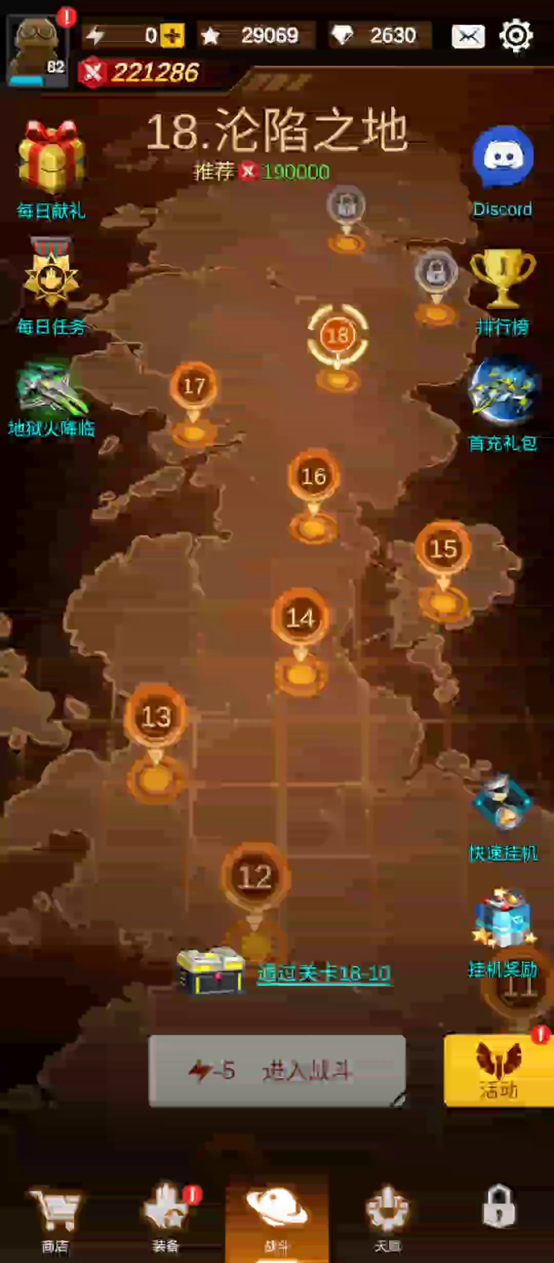第十八关还是海域,BOSS还是战列舰,难度比11关难一点,主要是皮厚点,伤害高点,通关难度不高,不上视频了。 从第十九关开始,跟玩魂斗罗差不多了。 小怪的子弹几乎是秒杀,面板数据3W的血,10W秒伤,在最后两关显得皮很脆,碰上一颗,不死也残血了。