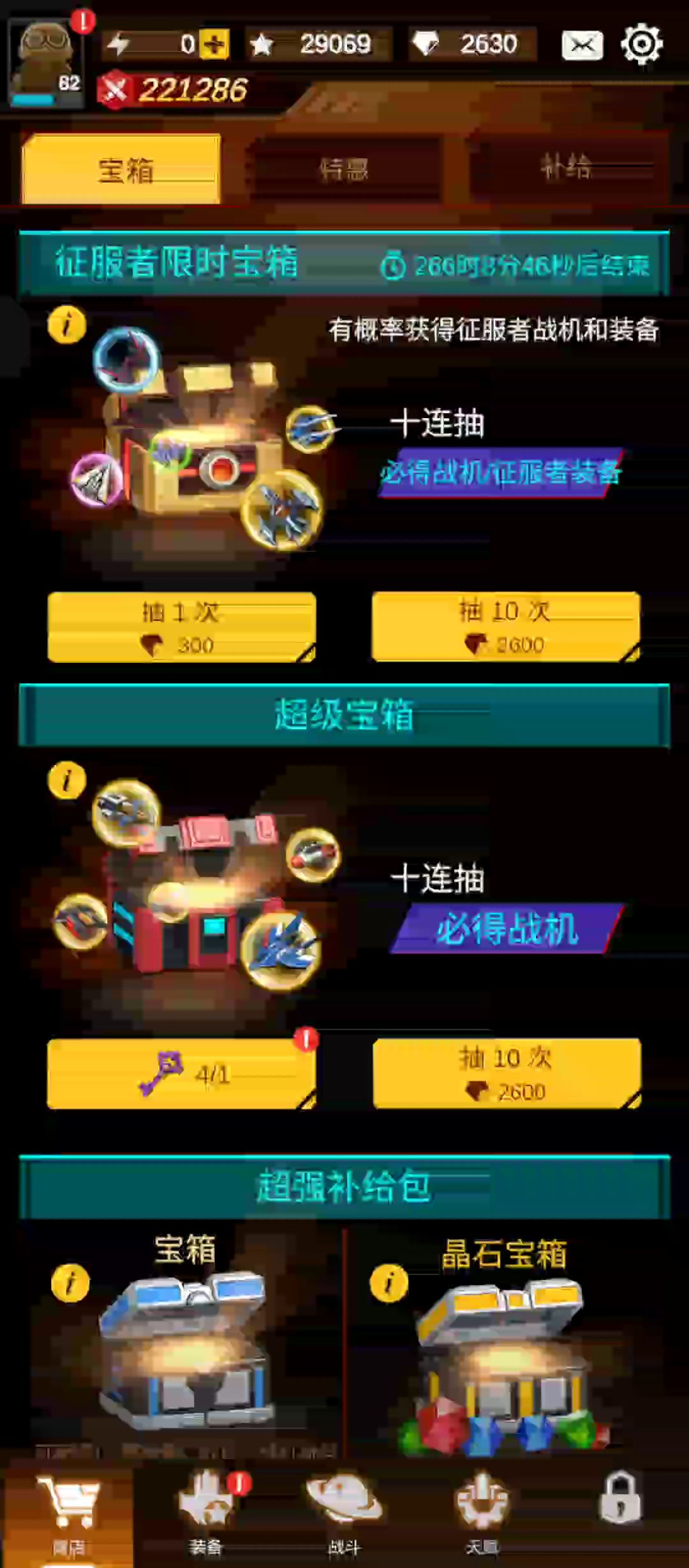 征服者战机,是1.7.21开始新增的战机,无法用碎片凑。 因为升级用的碎片只能在这种箱子里才有概率开出。 征服者也只是【有概率】抽出。 就连变形也是要凑够5件套才能变形。 总结:纯属土豪专属战机。 按照概率,万连抽也凑不够升7星的碎片。 估计得是托尼-斯塔克那种土豪才用的起吧。