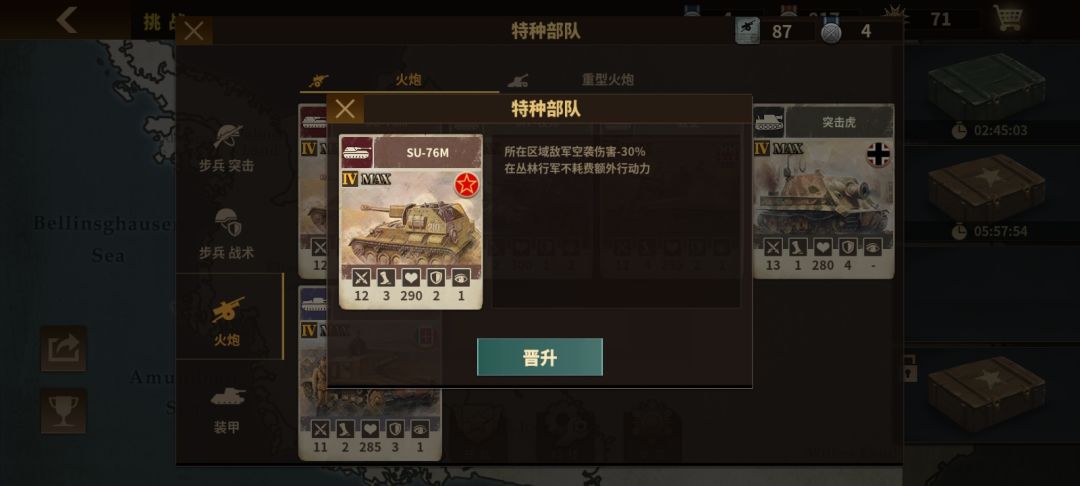 大家好,我是不靠谱的np,今天来继续为大家介绍一个伟大而优秀,并且十分符合历史事实,魔改不太严重的二战游戏将军的荣耀三特种兵分析,本期介绍的是轻炮。 轻炮作为我们游戏开始时,最开始接触的兵种之一。不过到后期在玩家的眼中的存在感就大大降低了。主要还是定位太过尴尬,本身作为一个后排输出输出,却没有特殊伤害加成,而且基础攻击也不高,打啥都没有伤害,还没有射程的白嫖优势,后期重坦一堆,打谁都能被反击。而且