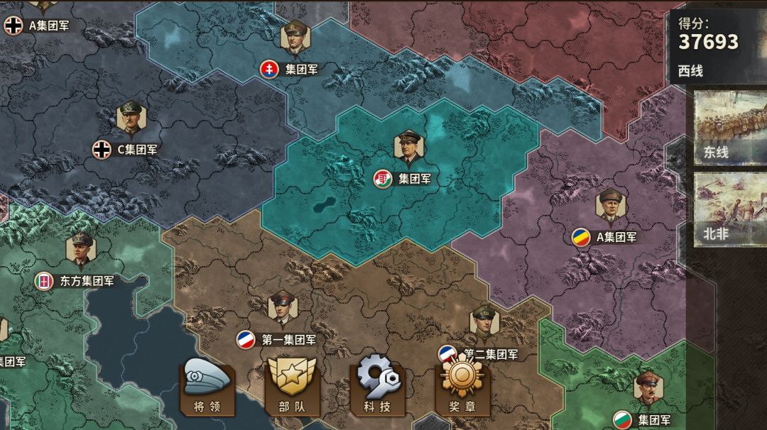 征服终于通关了(乌克兰军团),这版本征服真的是难受,地图太大了,主要打法就是在前边消极抵抗,然后用伞兵部队和跑的快的将在后边偷(跑的快都没用,迟早会被伞兵部队落在后边)。前期主要是这样,中期打到西班牙的时候会遇到比较强烈的抵抗。 前期(德国芬兰),对面一直用添油战术,基本从城市到前线就是一条线(芬兰是典型),后方要么没守卫,要么一个守卫(这个典型是德国所有集团军)。而且所谓的前线也可能由你的队友防