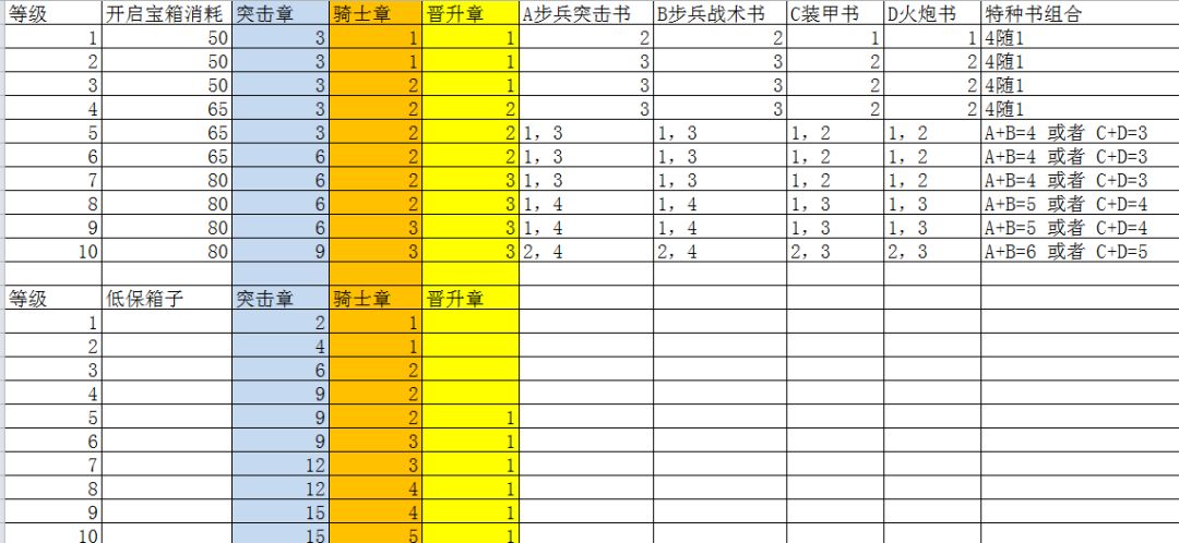 新版本挑战各等级箱子奖励图表 其中5级开始为质变,4级开出的特种图纸为4种中1种,5级开始掉落2种,2个步特种或者炮坦特种,我附带了10级的箱子奖励图,和图表一致。