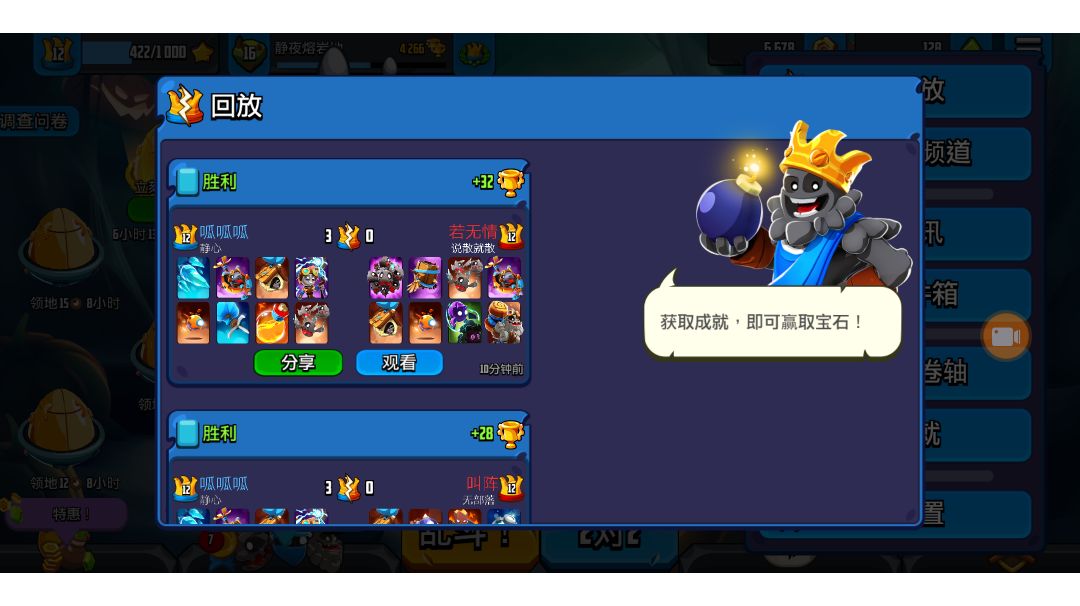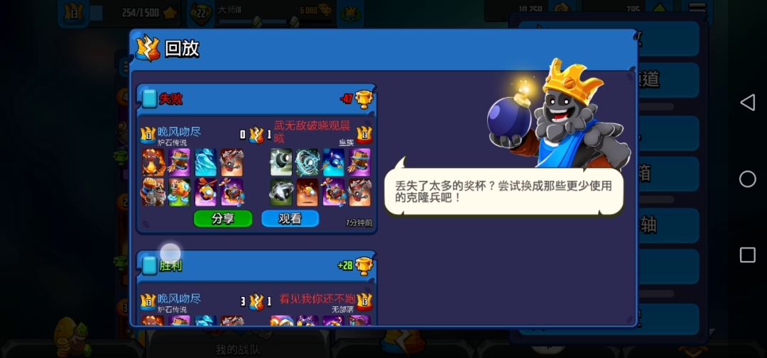 本是新手,游戏兵种理解还不行,操作多有失误,对手是同部落的,操作更好,多次反击赚大了,只是最后轻心估计失误了。