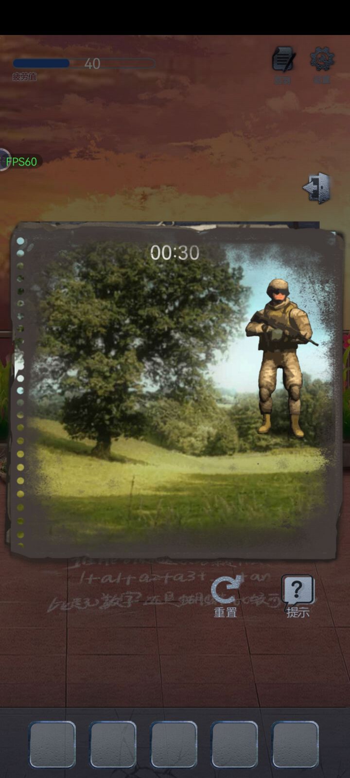 咋有一个疲劳值…而且掉挺快的,广告看挺多…最后一张还有数学算式,别说虽然不咋难,但是对我来说真的头疼,看到算式就强烈抗拒,直接看答案了这游戏还有个点不能分章节来打,想完成成就得从头开始,让我很麻爪。成就里面的游有个发现游戏的秘密咋都通不了,有人通过没?