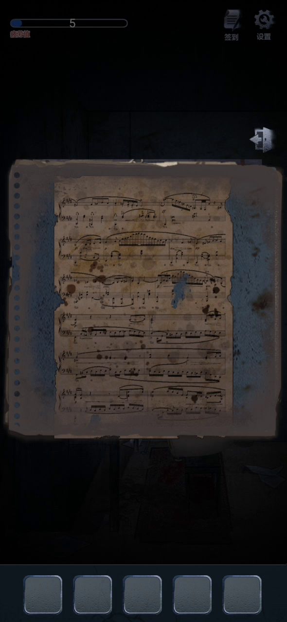 进入第三章的时候在初始房间有残缺乐谱,在白窗帘的位置,拾取残缺乐谱然后观察骰子的颜色,向左走会看到一个琴盒,点击它会出来拼图,本视频的开头是拼完之后的,最后的小半部分在第四章视频开头