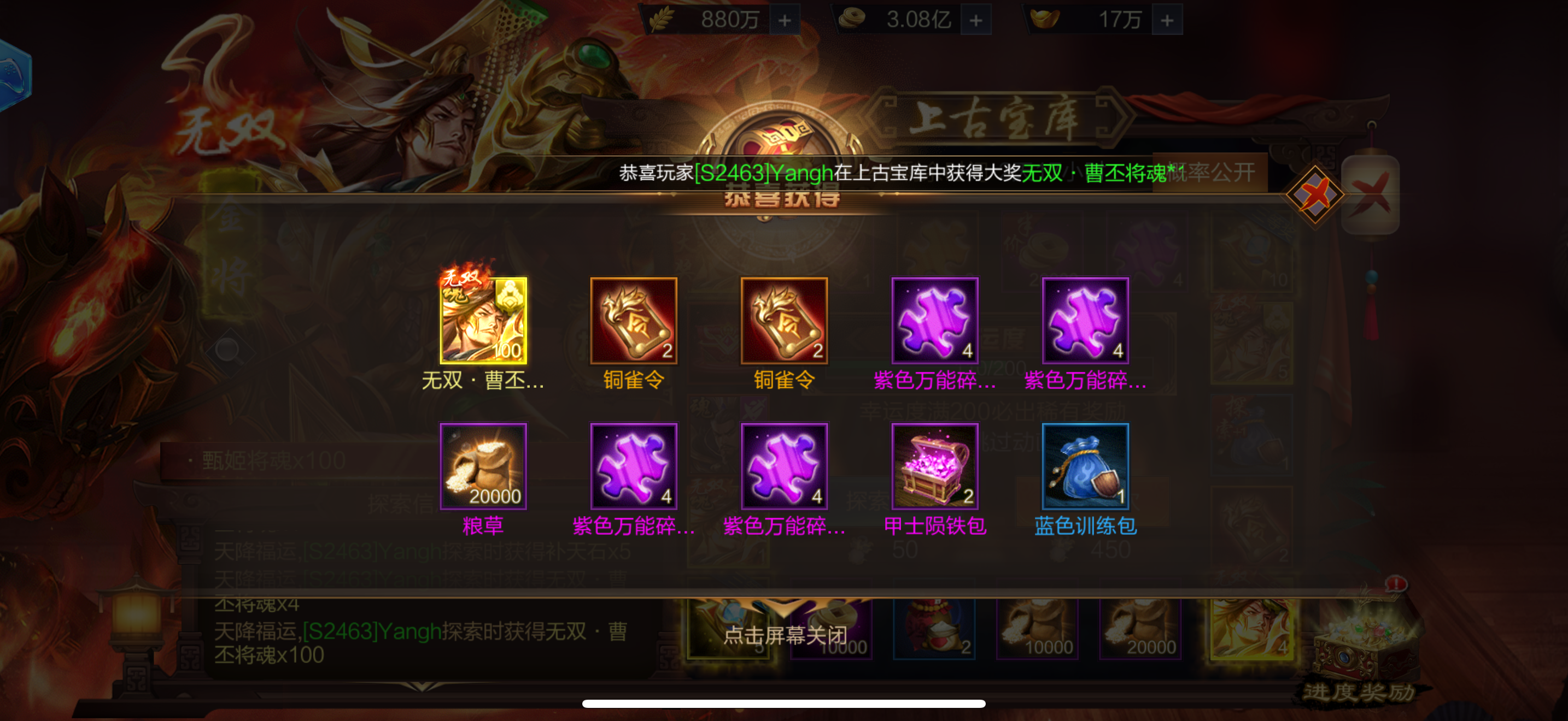 注:此期宝库武将为双将,宝库不限制选择本周二宝库的武将分别是:无双曹丕(魏国骑兵)无双甄姬(魏国弓兵)========!! 欧皇活动参与方式 !!=======【参与方式】:1.安卓用户:在本期宝库中,抽中大奖的主公需在本帖下方评论<评论格式:中大奖的截图+区服角色名>2.苹果用户:点击论坛首页<欧皇集中营>--点击右下方蓝色加号发布图文帖子<发帖格式:中大奖的截图+区服角色名>