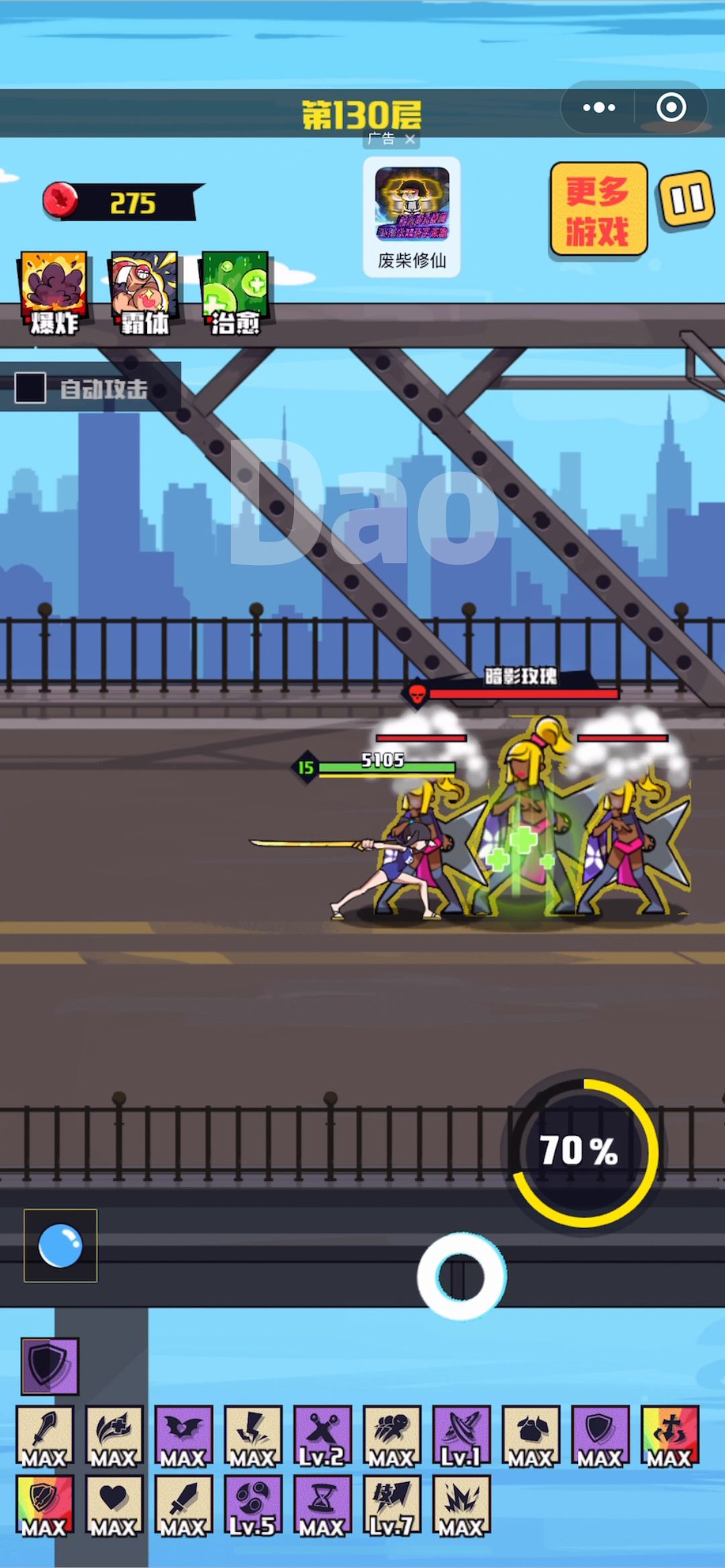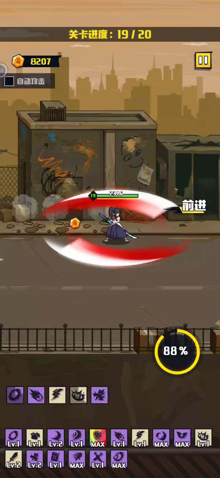 装备搭配在最后,技能看视频里面的,两次复活全部用在了20关 中间死了以后的广告视频我剪掉了,
