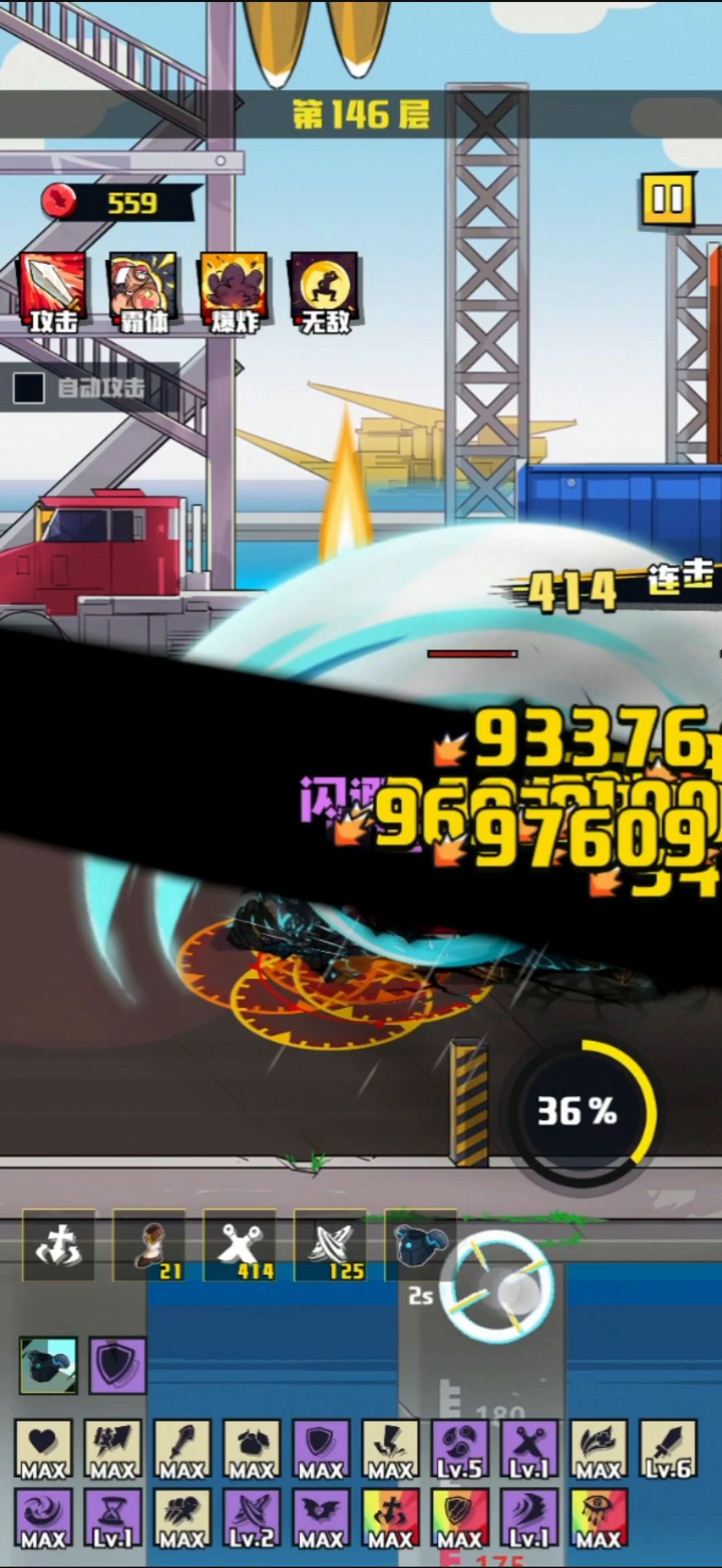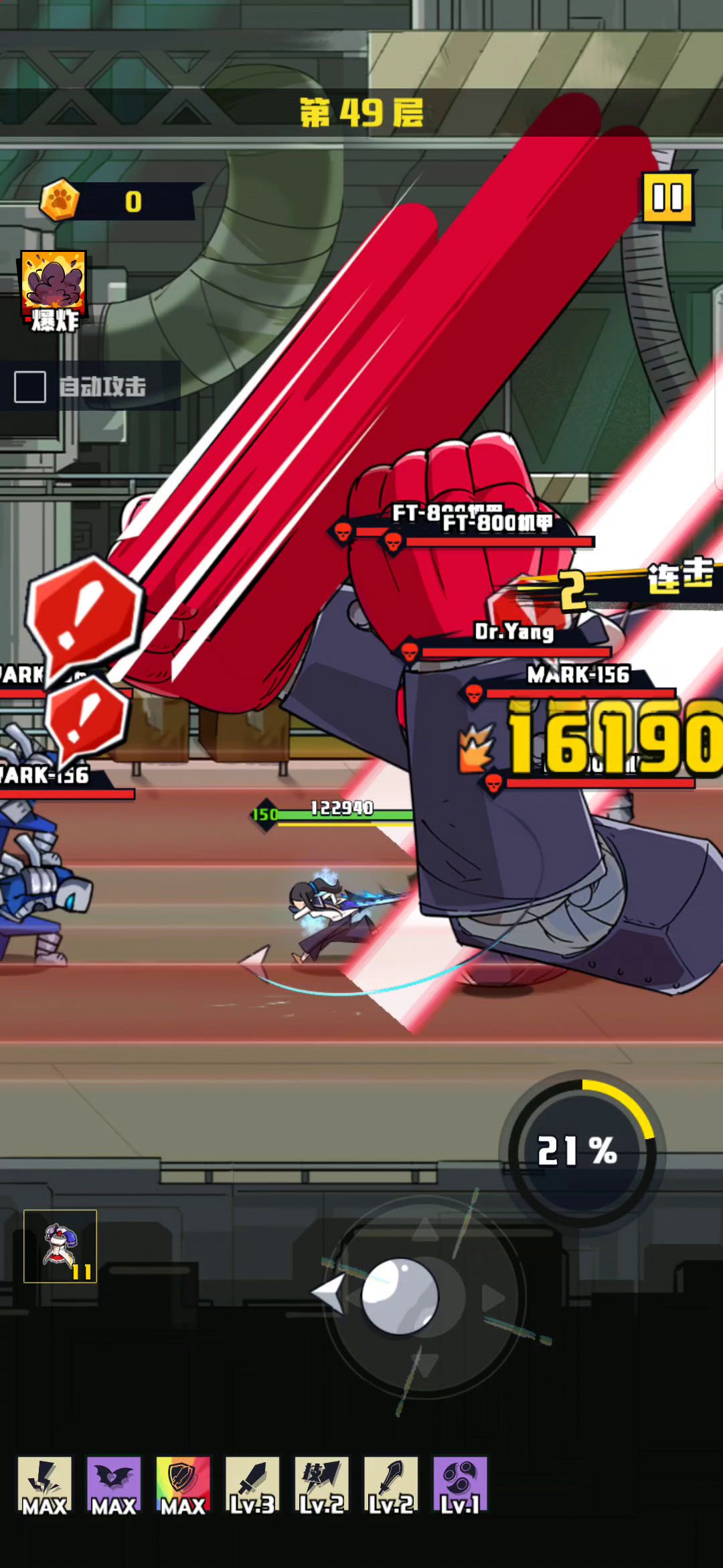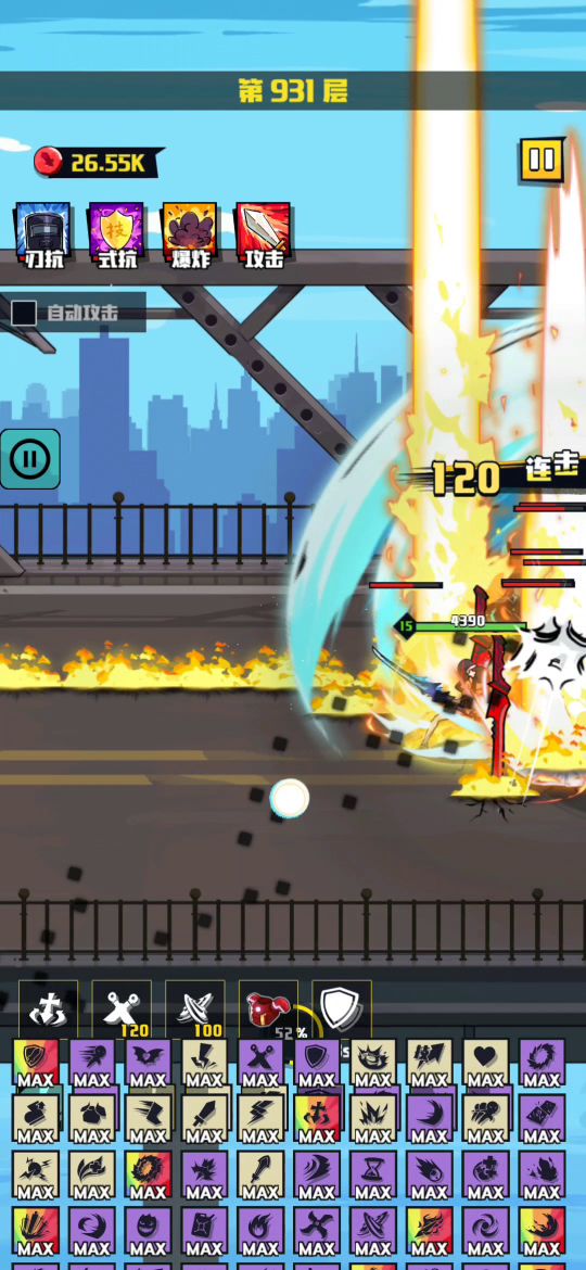 连续开大,玩出爬塔的感觉!乱砍!精确计算时间,把老杨控到死!BOSS的半血电塔,瞬移等技能都没用出来。