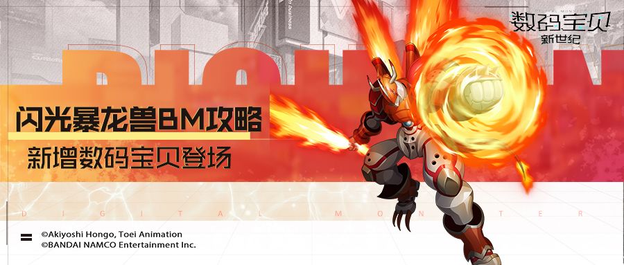 各位队长好呀~游戏内的进化培育功能即将开启闪光暴龙兽BM的融合进化,大家消耗数码宝贝经验和同调因子,可将闪光暴龙兽与阿波罗兽融合进化为超究极体数码宝贝闪光暴龙兽BM。 下面歌子将带来闪光暴龙兽BM的攻略指南,帮助大家快速了解闪光暴龙兽BM的技能效果与策略玩法! 群体攻击熔甲标记 闪光暴龙兽BM攻略分享 闪光暴龙兽通过爆裂进化而暂时发挥出极限能力,身体充盈着太阳级高能量火焰灵气的特殊形态。那么在《数
