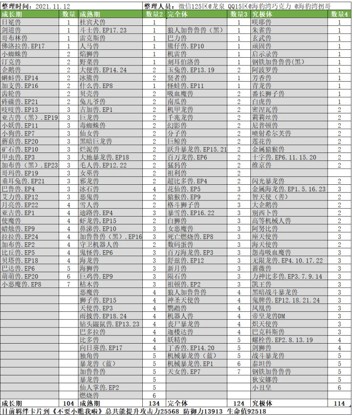该内为玩家自发整理,不为官方提供内容,仅作参考使用。特别鸣谢微信125区 @龙泉QQ15区 @海豹湾巧克力两位队长的提供整理!!!
