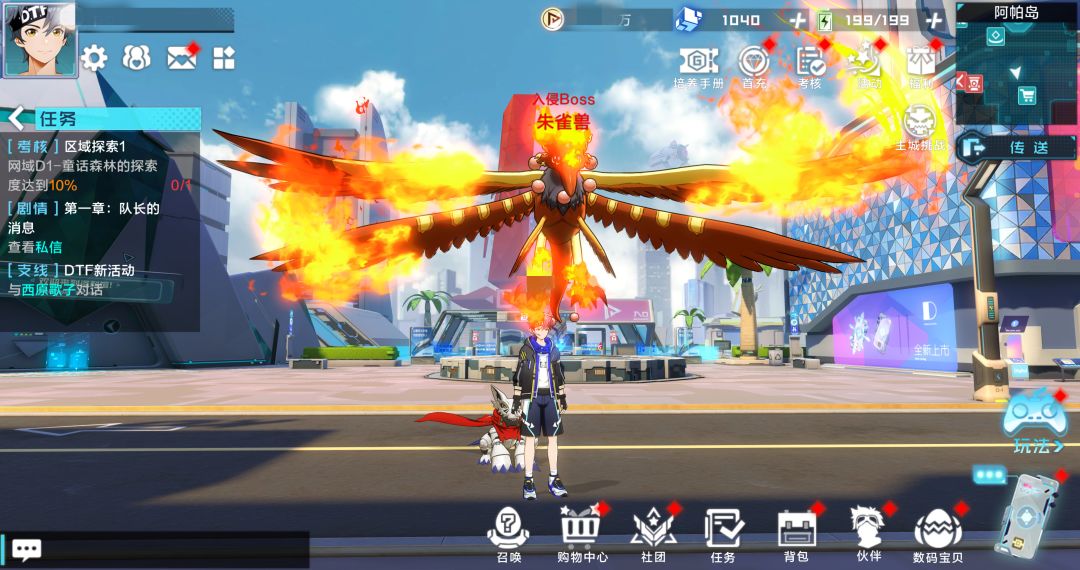 四圣兽在游戏里作为周常BOSS出现 就在阿帕岛的广场中心 还是比较壮观的