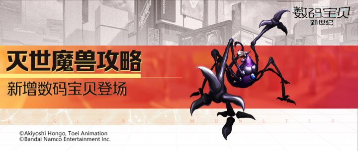 日安,亲爱的队长大人们!今天又到了歌子的爆料时间!新世纪即将更新全新进化路线,极具特色的灭世魔兽正式登场!这位数码宝贝可以定身敌方,降低暴击和暴击伤害,还能减少敌方自然恢复的AP点数!下面歌子将介绍游戏内灭世魔兽的图鉴资料以及技能介绍,大家赶快来了解一下吧!进化路线迪亚波罗兽+金属海龙兽联展进化 超究极体:灭世魔兽大量幼年期迪亚波罗兽进行融合,发生突变从而诞生的超究极体数码宝贝。迪亚
