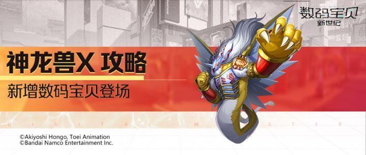 游戏内登场了一位全新伙伴——神龙兽X! 接下来它将陪队长们一起冒险,其技能可以守护队友,并根据受到的敌方攻击类型触发不同效果!#数码宝贝新世纪#数码宝贝#PV