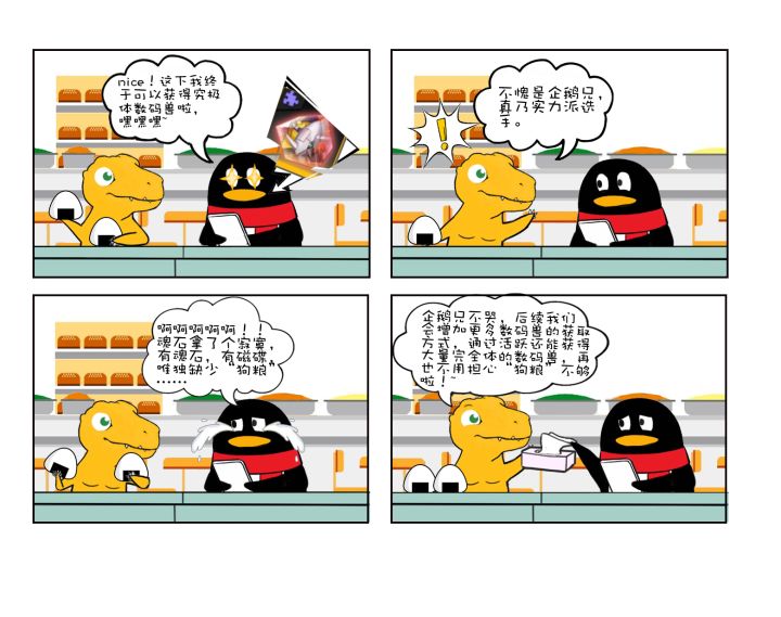 #研发下午茶#魂石有了,磁碟有了,却刚好没有趁手的完全体?类似企鹅兄这样的情况之后大可不必担心~后续会增加更多数码兽的获取方式,还能通过活跃度获得完全体哦!魂石在手,究极必有!(๑•̀ㅂ•́)و✧