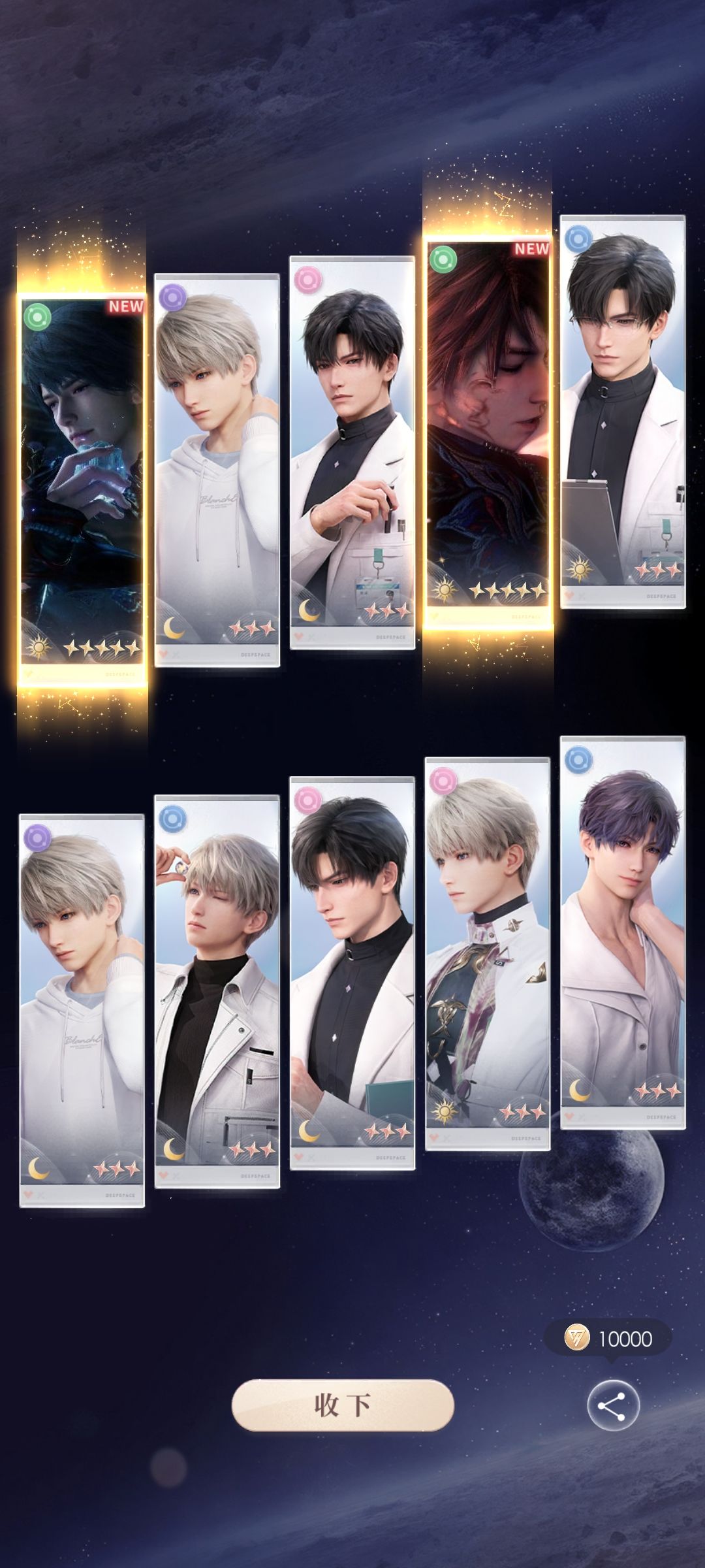如果觉得打喵喵牌和抓娃娃啊,太麻烦的话,可以进去后直接退出来,虽然每次只有75的快乐巧克力 你认真的话单个人也不过就2x3x150,而且每个人都拿全会超出周上限 但是!!! 一个人喵喵牌是3x75,抓娃娃是3x75,总共是450 三个人总共可以拿1350,而且10分钟不到! 如果觉得麻烦的夫人们可以试试,就是抓不到娃娃而已,而且喵喵牌的喵币照拿! 如果想拿全!不嫌麻烦就每个男主都认真地