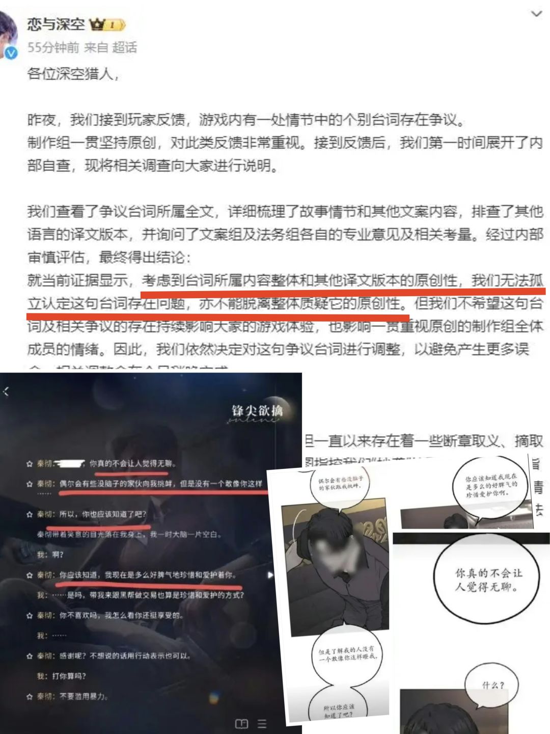 恋与深空正面回应秦彻台词抄袭韩漫汉化组