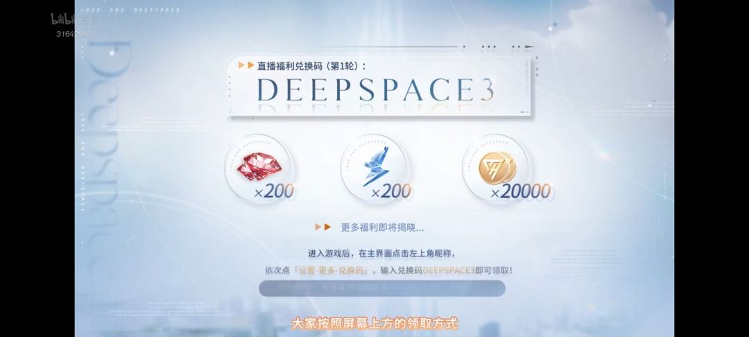 ✨ 兑换码1:DEEPSPACE3 粉钻*200,体力*200,金币*20000 ✨兑换码 2:20250122 蓝券*10 ✨ 进入游戏后,在主界面点击左上角昵称,依次点「设置-更多-兑换码」,输入兑换码即可领取! #恋与深空 #恋与深空攻略