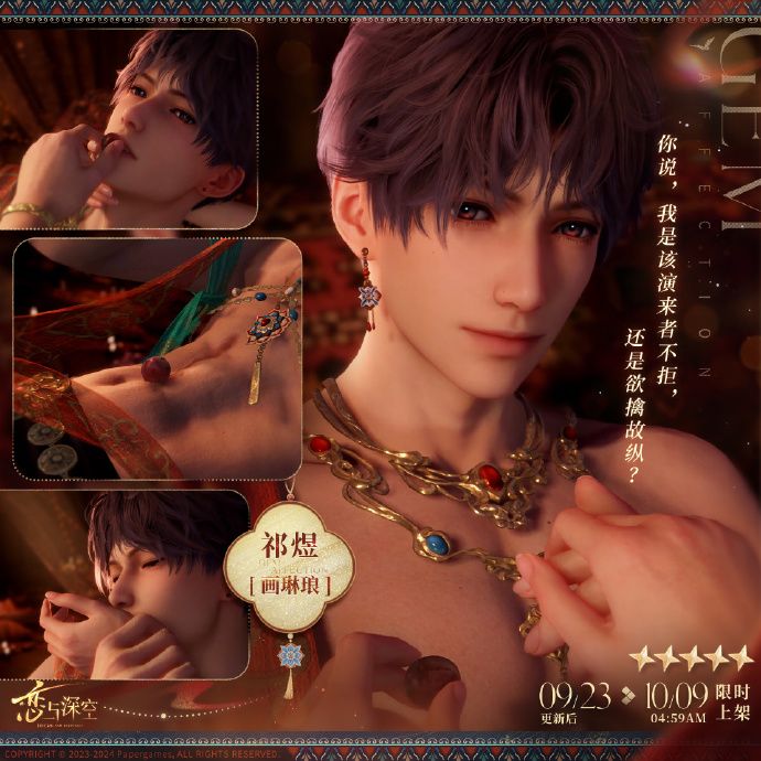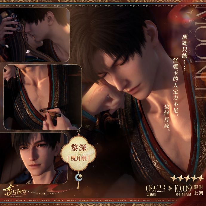 神经跳痛,视线模糊。半梦半醒间,你分享他的痛苦。 他不作反抗,放任你在意识断线前开展一场审判。 “那你也拥有一点罪,好不好,别让我太孤独了。” 💫夏以昼·远空执舰官 集齐五星思念「夏以昼·远空棠雨」和「夏以昼·远空迷航」,即可解锁夏以昼的全新搭档身份「远空执舰官」。 更多互动心迹与搭档故事,更新后等待猎人亲身体验! ——— 跨越光年,与你并肩。 《恋与深空》3.0年度版本「万象遇你」现已开启! 🪐