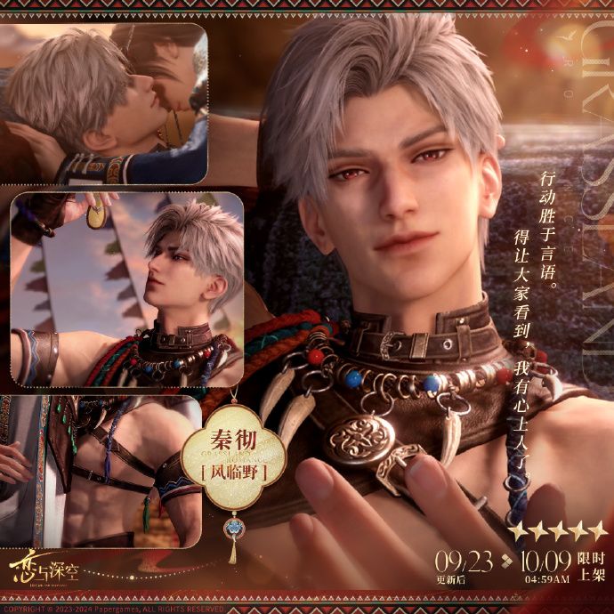 像他这样的人也会被驯服吗?别吝啬,让他见识见识你的手段。 🚫五星思念限时UP许愿 7月15日更新后~8月1日上午4:59,限定五星思念「秦彻·不设防禁区」许愿概率限时大幅度提升。 *活动结束后,本张思念将暂无获取途径,不会进入常驻许愿极空回响中。 ——— 跨越光年,与你并肩。 《恋与深空》2.0版本「交错视界」7月15日正式上线!