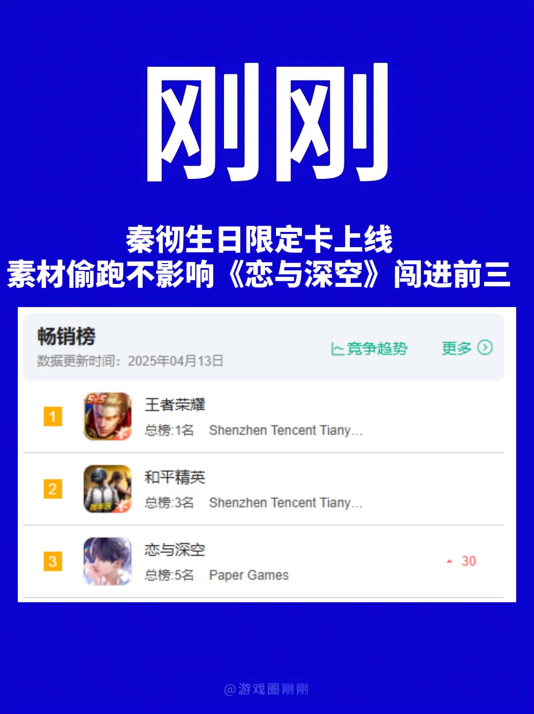 刚刚!秦彻生日卡上线,《恋与深空》进前三