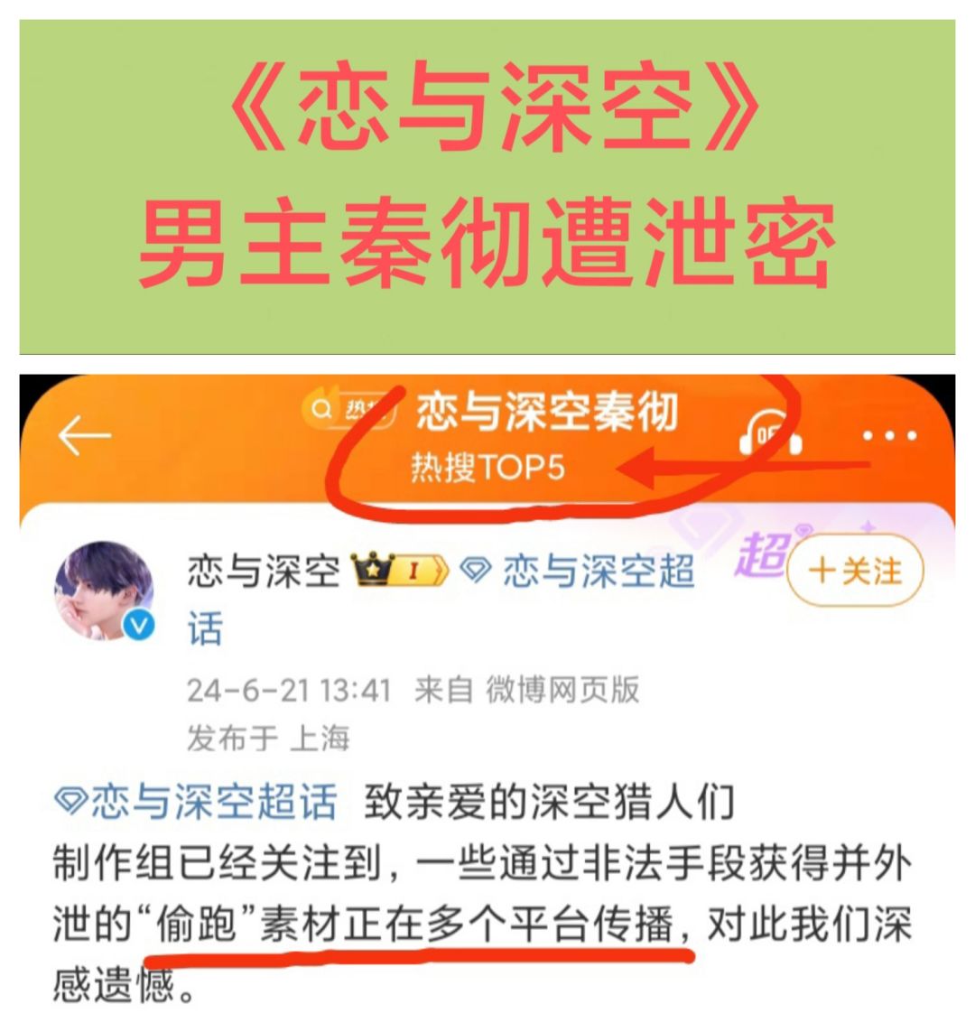 今天6/21中午,《恋与深空》发文回应新男主“秦彻”泄密![表情_微笑][表情_微笑][表情_微笑] 官方称这些外泄“偷跑”素材是通过非法手段获得的,该事件打乱了计划,破坏了所有玩家的体验。[表情_吃瓜][表情_吃瓜][表情_吃瓜] 与其让恶意泄露打乱节奏,不如主动出击!于是官方决定,首次公开秦彻前瞻PV![表情_斜眼笑][表情_斜眼笑][表情_斜眼笑] 并宣布将全面调查此次泄密事件,追查到底,严