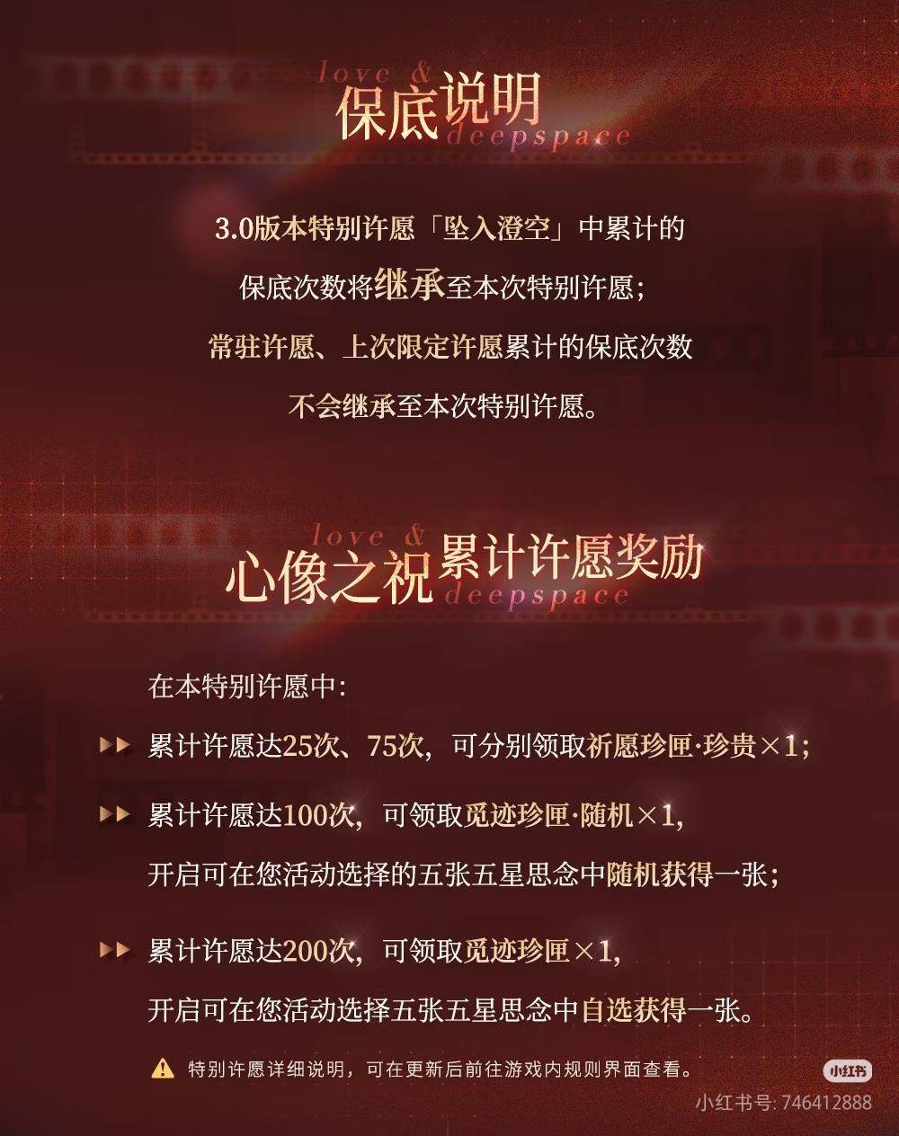 盛典即将启幕,银河静候为你加冕。>>>5.0丰厚福利全总结12月31日起,含直播十连在内,参与活动共计可免费领取「✨40连抽、游戏内花园独栋别墅*1、五星思念*1、四星思念*6、海量钻石」及专属牵绊装扮、“我”的服装、多款饰品、写真特效、丰厚培养材料等豪华福利!>>>缤纷活动全掌握💫「爱,宇宙,诗王座」五星限时UP许愿✨「首充加赠」重置、「周年臻享」及系列礼包上架,详情可在更新后前往游戏