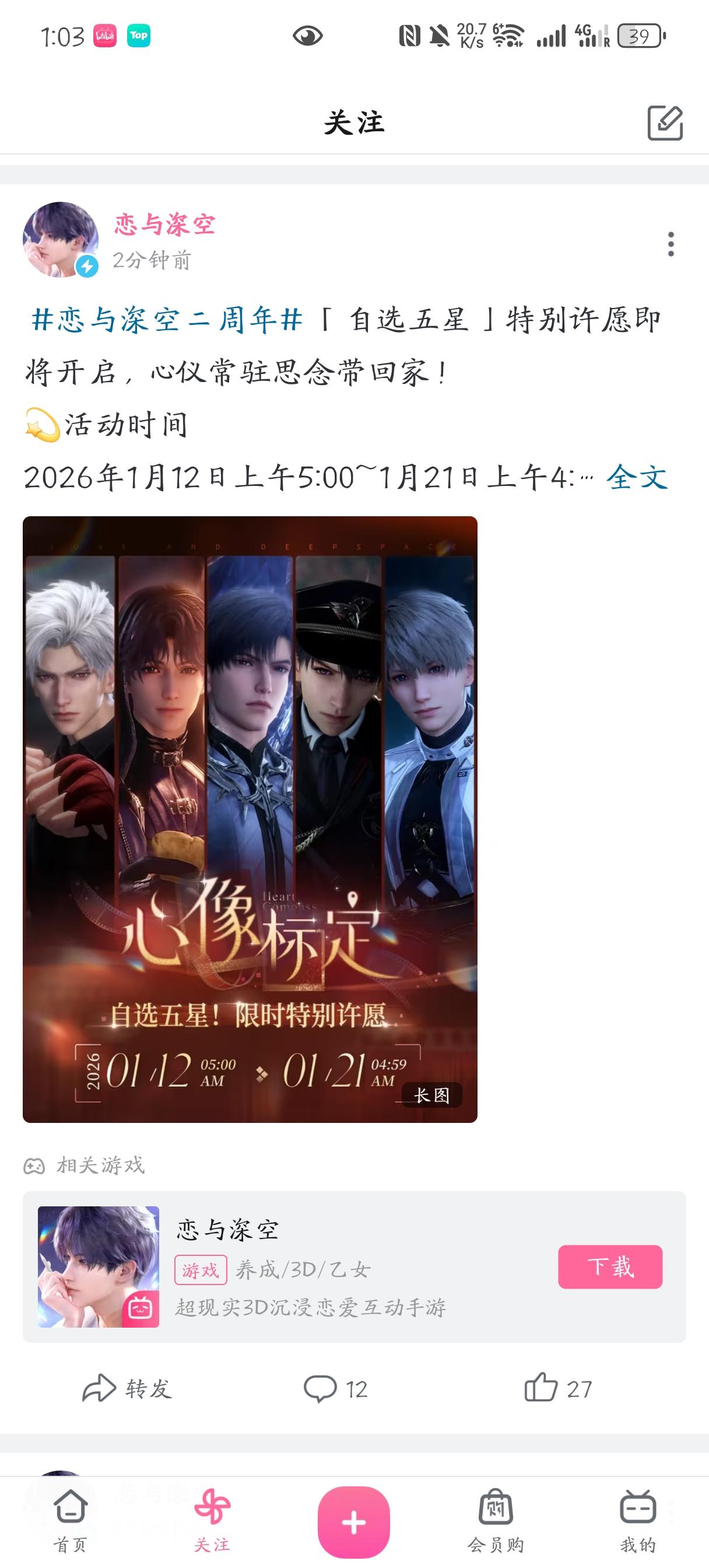 新的一年你可对我好点儿吧!!! #恋与深空 #恋与深空更新版本 #恋与深空新版本