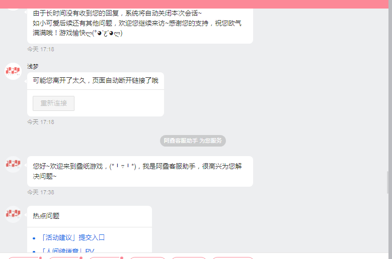 1. 【2月4日】下午,我因游戏问题需要帮助,于【16:16左右】进入游戏内客服通道排队。2. 在排队等待期间,我已将需要反馈的问题详细输入到会话框中(这是关键!)。3. 客服“浅梦”在【17:10】接入后,并未查阅我排队时已发送的内容,而是机械地发送欢迎语并等待我“再次”描述问题。4. 由于我在此期间需要工作,未能实时盯着手机回复,系统于【17:18】判定我“长时间无响应”并自动关闭了会话