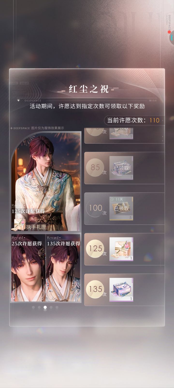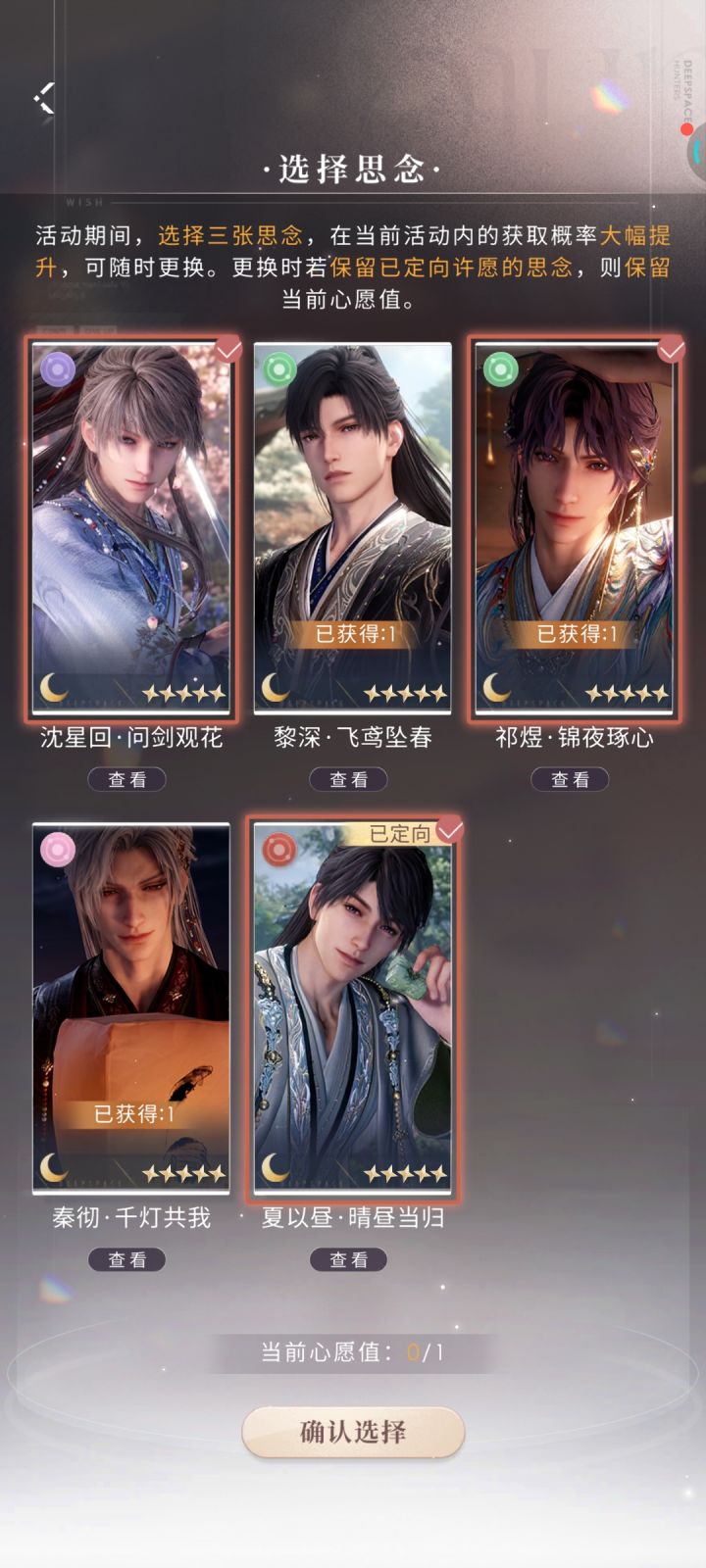 哥哥复刻的时候40抽把他的两张日卡都抽出来了,我都抱着自己吧运气用完了的心思了这次新活动目前战绩在这……从来没有过这样的“待遇”我觉得貌似在用生命抽卡……#恋与深空 #